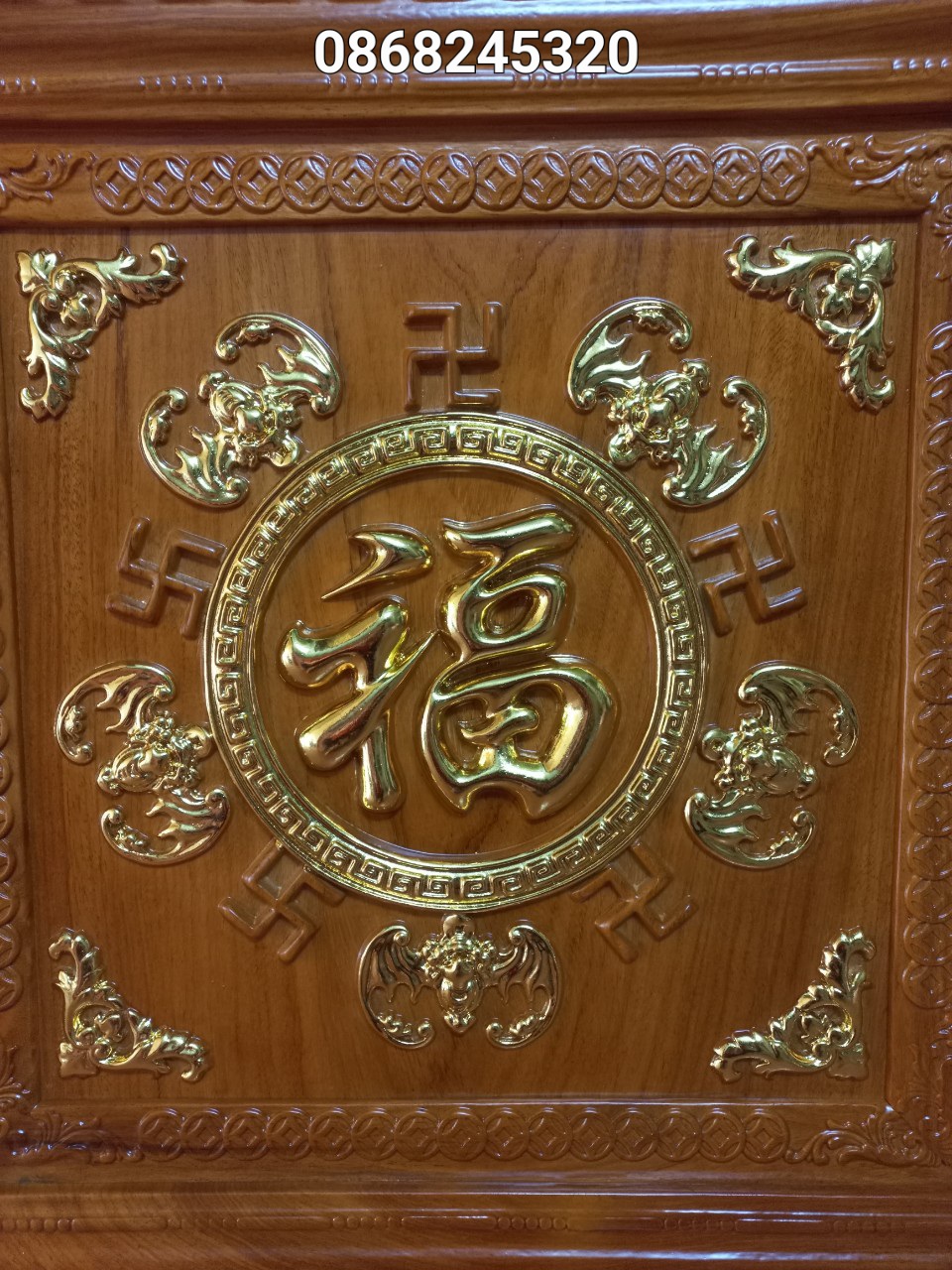 Tranh gỗ chữ Ngũ Phúc Lâm Môn ( Chữ Phúc 5 con dơi) treo phong thủy Chất liệu : Gỗ hương đá liền khối đục nổi sơn PU Sản phẩm đã hoàn thiện như hình