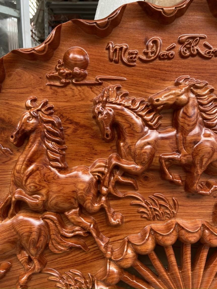 Mẫu tranh mã đáo thành công 67x127 sắc nét gỗ hương đẹp trong tầm giá 3tr5