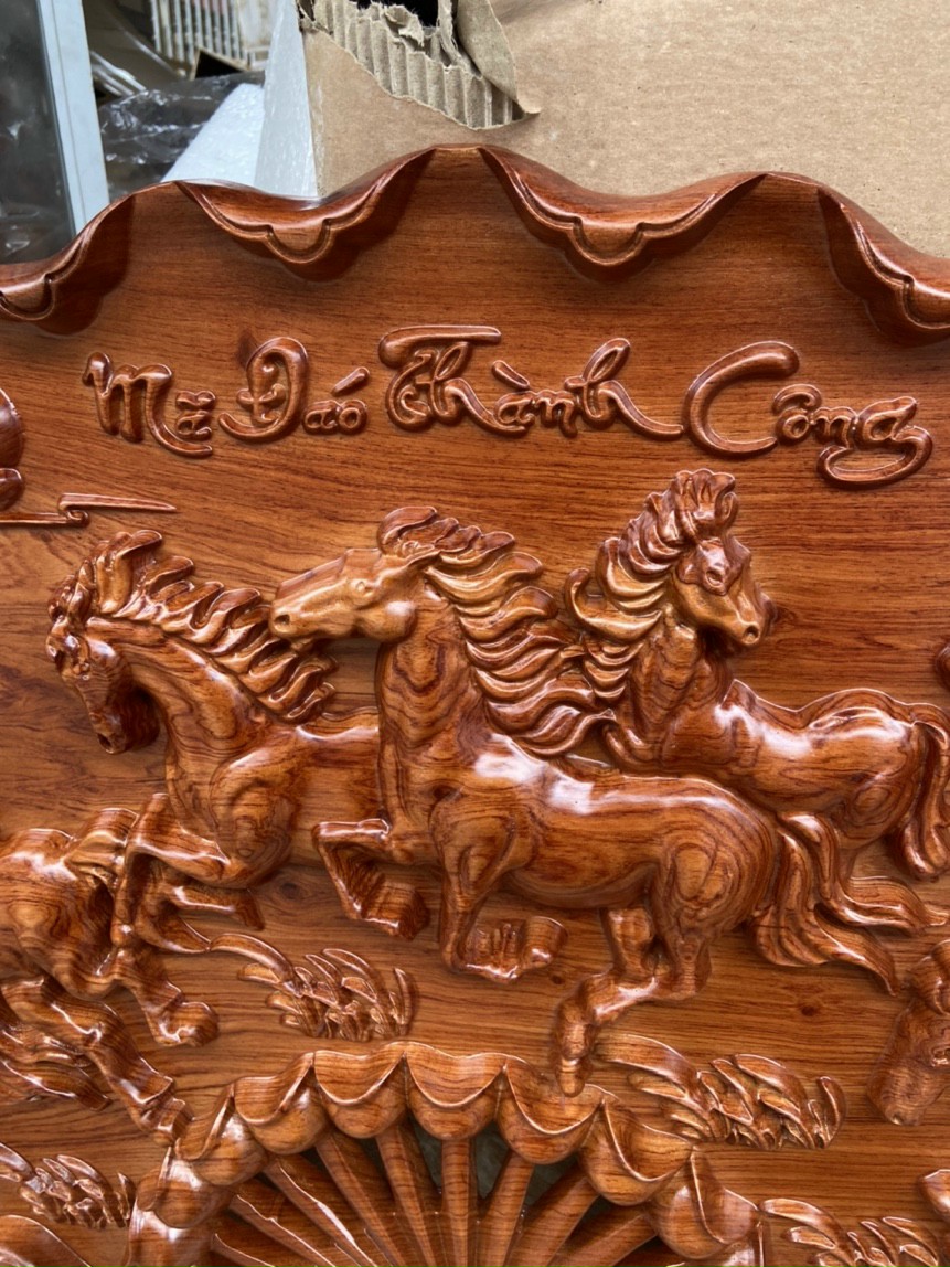 Tranh Mã Đáo Thành Công đục trên gỗ hương đá nam phi 80 x 1m90 x 8
