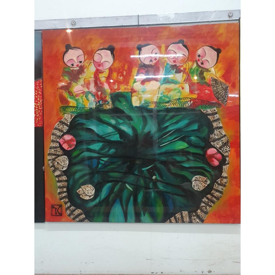 Tranh vẽ sơn mài – CỬU NGƯ QUẦN TỤ -CÁ CHÉP HOA SEN Chất liệu sơn mài trên gỗ,dày 1cm thếp vàng, bạc, vỏ trứng cực tinh xảo Khung vân gỗ nghệ thuật, chất liệu