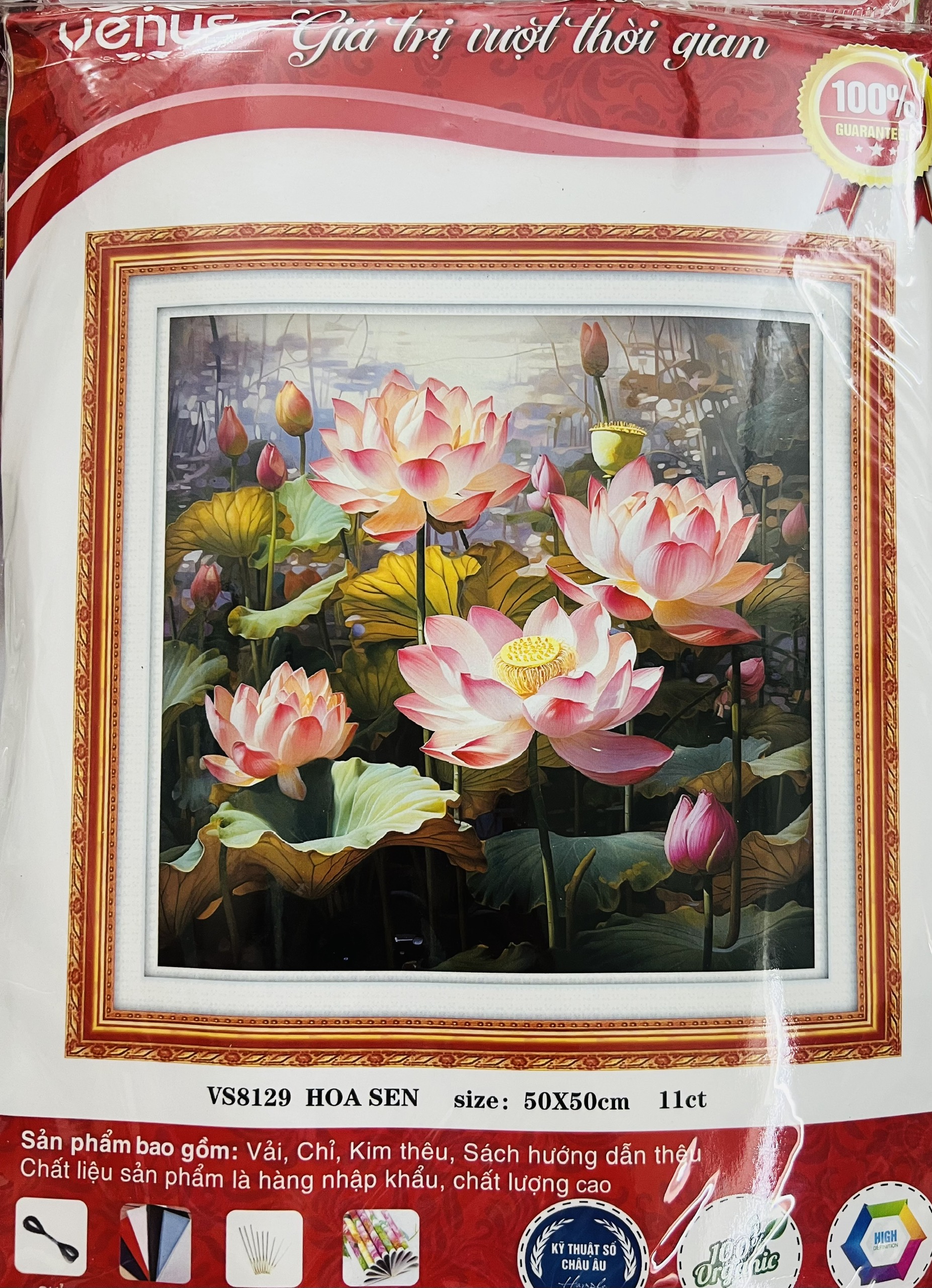 ✨Tranh thêu kín Hoa sen VS8129, kích thước 50 x 50 cm