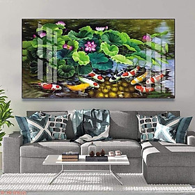 Tranh Treo Tường Tráng Gương Pha Lê Cao Cấp “Cửu ngư quần hội” Trang Trí Phòng Khách,Sang Trọng