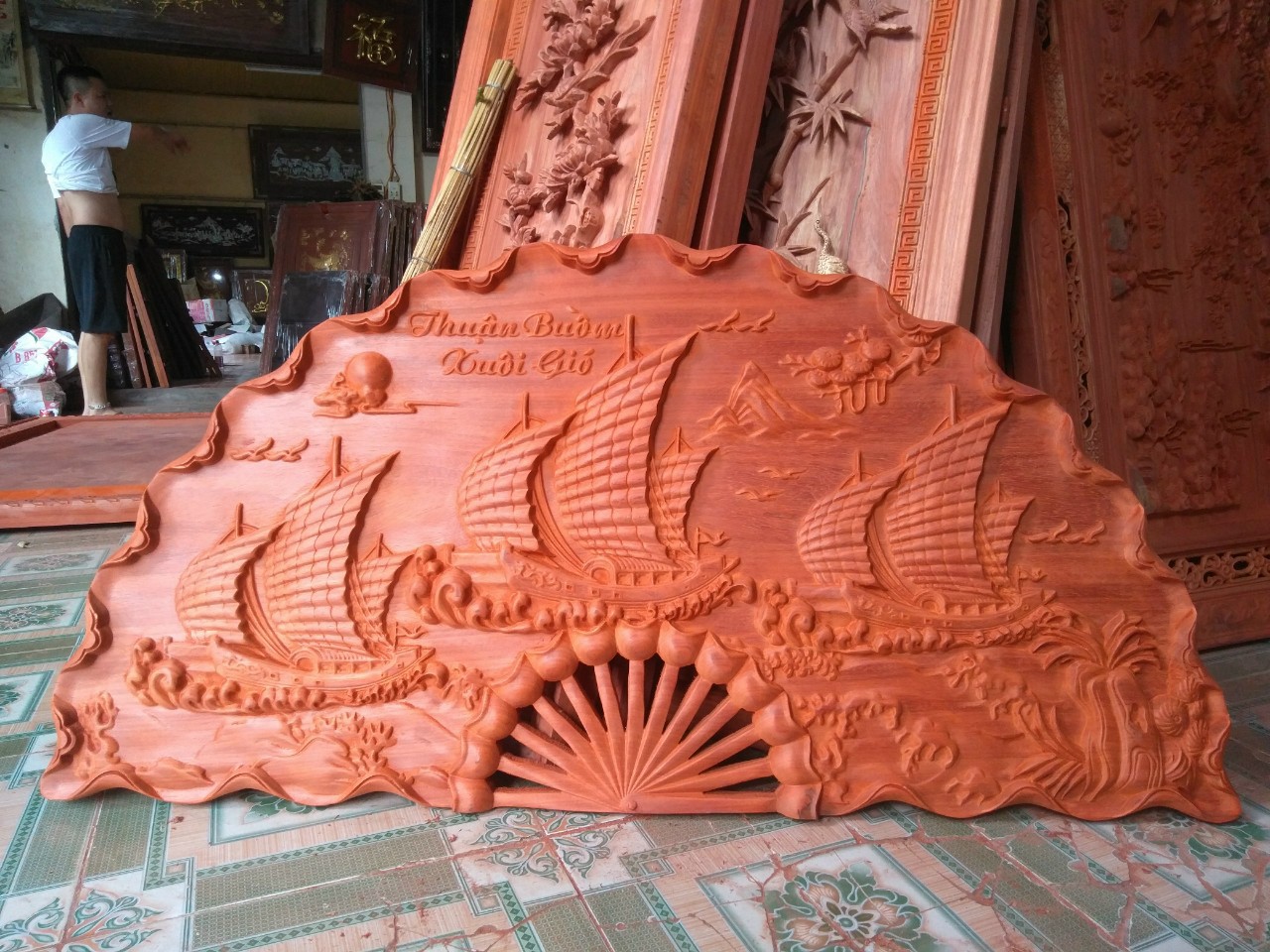 Tranh thuận buồm xuôi gió gỗ hương đỏ#dogothangmai #tranhtreotường