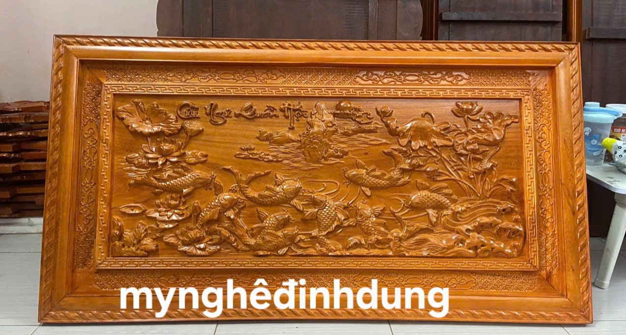 TRANH GỖ PHONG THỦY - Tranh Khắc Gỗ Đẹp Treo Tường Tích Cửu Ngư Quần Hội