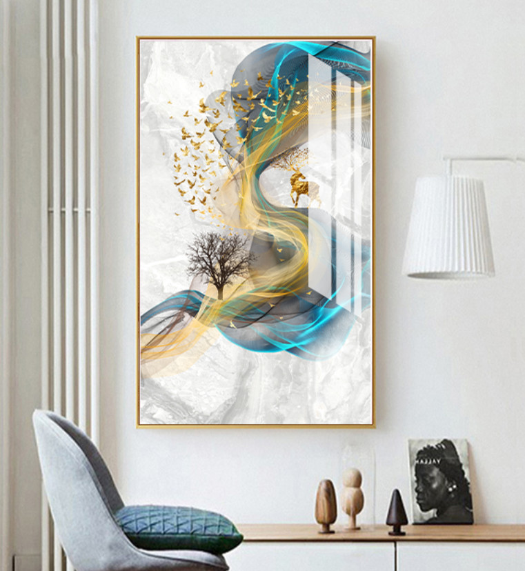 ✨Tranh treo tường phòng khách, phòng ngủ -Tranh treo 1 tấm dọc M26408/ Gỗ MDF cao cấp phủ kim sa/ Chống ẩm mốc, mối mọt/Bo viền góc tròn