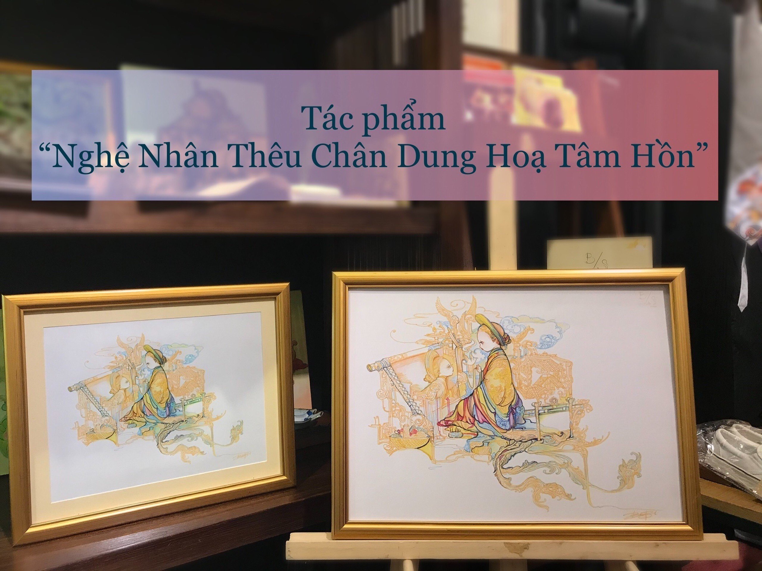 Tranh in nghệ thuật "Thêu Chân Dung, Họa Tâm Hồn" Với mong muốn truyền cảm hứng cho những bạn trẻ đam mê nghệ thuật và gìn giữ nét đặc sắc của văn hóa Việt, B/S Art Studio đã sáng tạo loạt tranh in nghệ thuật với chủ đề văn hóa Việt Tranh in được sử dụng công nghệ in chất lượng cao và in trên khổ giấy dày nên vẫn thể hiện được độ sắc xảo của từng chi tiết đồng thời màu in đậm rõ ràng không bị phai. B/S Art Studio mong những tác phẩm hội họa có thể giới thiệu và góp phần gìn giữ các ngành nghề thủ công truyền thống của dân tộc. Bộ sưu tập tranh in "Nghệ Nhân Việt" mượn hình ảnh các thiếu nữ mang ý nghĩa của sự khéo léo, tinh tế trong trang phục cách điệu dựa trên Áo Dài truyền thống, kết hợp nhiều hoa văn, họa tiết và biểu tượng đại diện cho những nghề thủ công truyền thống của Việt Nam.  Thông qua bộ tranh "Nghệ Nhân Việt" B/S Art Studio mong muốn giới thiệu những "Giá Trị Vượt Thời Gian" là kiến thức và kỹ thuật... sẽ được gìn giữ, bảo tồn và phát huy. Chính điều này sẽ là "sợi dây gắn kết" giúp chúng ta trò chuyện với Quá Khứ, hiểu được các giá trị của Hiện Tại và hướng đến Tương Lai. Dù là Tranh in nhưng trên mỗi tác phẩm sẽ được họa sĩ B/S ký tên và dùng bút 3D vẽ thêm, tạo hiệu ứng nổi, giúp phản quan ở nhiều góc độ và làm tranh thêm nổi bật, trang nhã và sang trọng. Tác phẩm " Thêu Chân Dung, Họa Tâm Hồn" mô tả nàng tiểu thư (trong bộ trang phục Nhật Bình truyền thống của Việt Nam) dùng sắc màu của sợi chỉ để họa tâm tư, giấc mơ của mình. Nàng muốn thoát khỏi những luật lệ, những ràng buộc trong khuôn khổ quy tắc nơi chốn kinh thành xưa để tìm đến sự tự do.