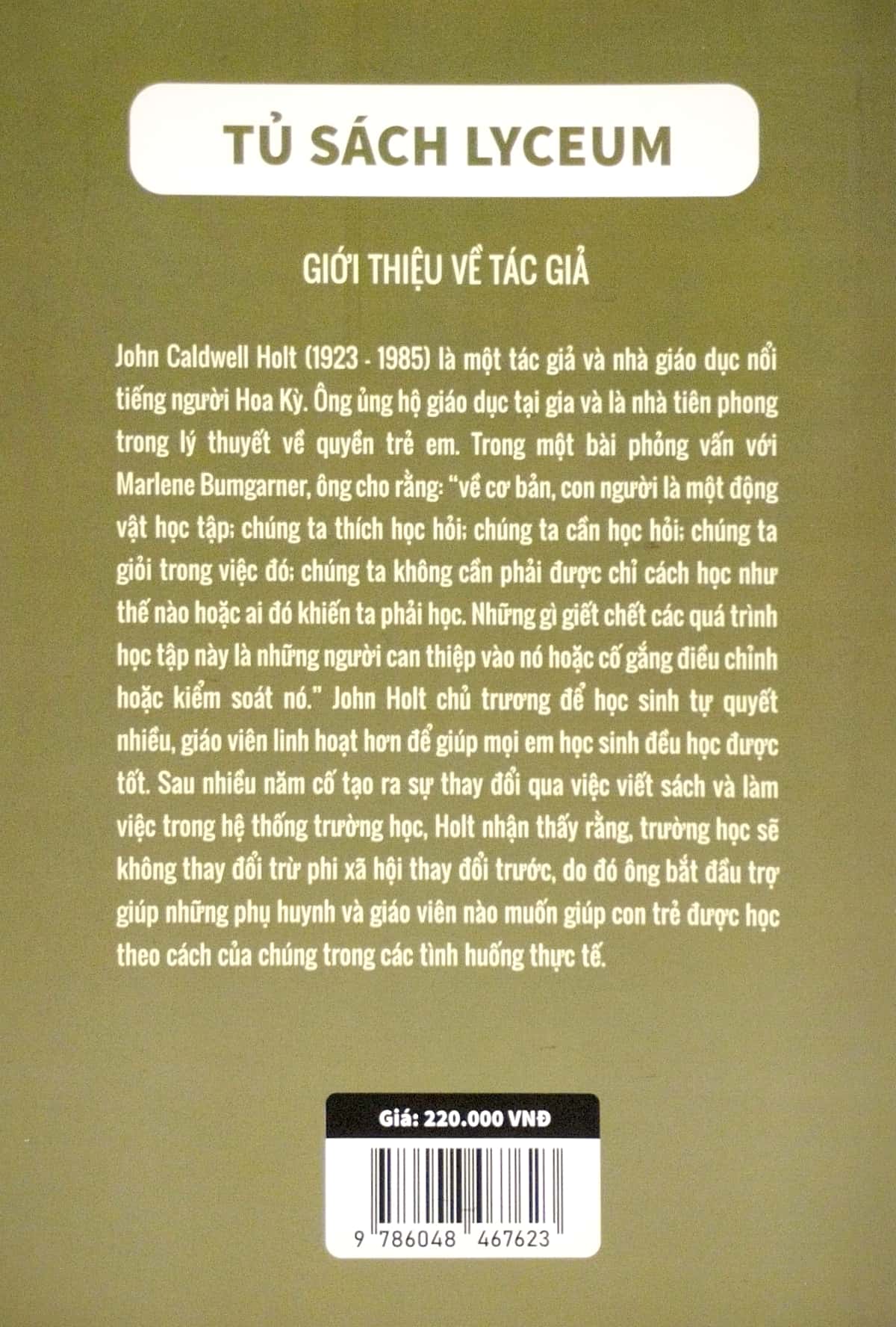 John Holt (1923-1985), tác giả sách và nhân vật đầu tàu trong công cuộc cải cách giáo dục, đã viết mười quyển sách, bao gồm quyển bạn đang cầm trên tay, “Trẻ em khó học thế nào” (How Children Fail), ngoài ra còn có “How Children Learn” (Đã được Book Hunter dịch và xuất bản với tựa đề “Trẻ em học như thế nào”, NXB Phụ nữ Việt Nam, 2022, “Never Too Late”, và “Learning All the Time”. Tác phẩm của ông đã được dịch ra mười bốn ngôn ngữ. “How Children Learn” và tập sách đồng hành “How Children Fail”, được bán ra hơn hai triệu bản in trong nhiều lần tái bản, cùng nhau đã tạo nên ảnh hưởng to lớn đến nhiều thế hệ giáo viên và phụ huynh. Các thư từ của ông gần đây đã được tập hợp và xuất bản với nhan đề, “Một cuộc đời đáng sống” (A Life Worth Living). Tri kiến sâu sắc của John Holt về tâm trí trẻ em đang càng ngày càng được trân trọng trong hành trình chúng ta biến trường học và gia đình trở thành nơi học hỏi tốt hơn cho trẻ em. Công trình của ông Holt vẫn đang được tổ chức Holt Associates tiếp tục.