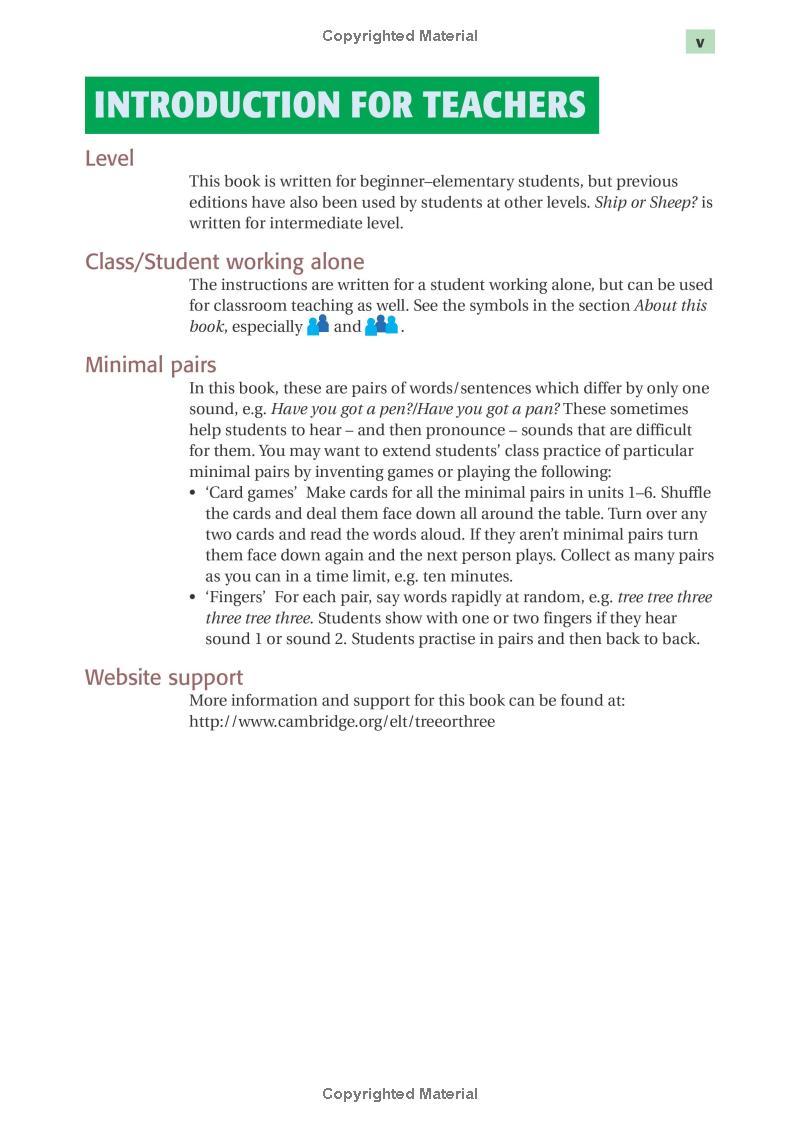 Enjoyable pronunciation practice of English sounds, word stress and intonation for beginner-level students. Now in full colour and with updated artwork, this revised edition of Tree or Three? retains its simplicity and straightforward syllabus.