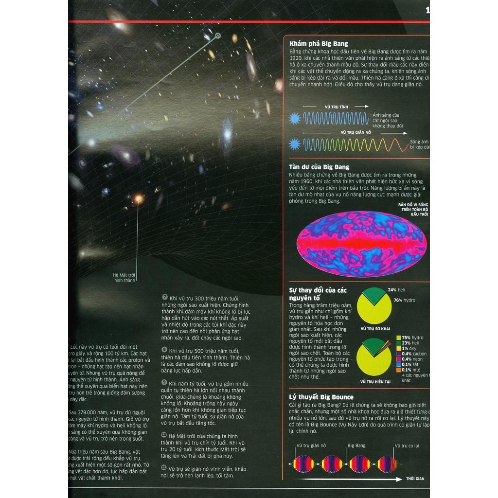 Tri Thức Về Vạn Vật - Một Thế Giới Trực Quan Chưa Từng Thấy Cuốn sách gồm 6 chương sẽ mang đến cho bạn đọc những trải nghiệm thú vị bao gồm: KHÔNG GIAN – KHÁM PHÁ KHÔNG GIAN VŨ TRỤ BAO LA Du hành và khám phá bí ẩn của vũ trụ từ vụ nổ BigBang tới sự hình thành của các thiên hà, từ sự ra đời đến cái chết của một ngôi sao như thế nào, cùng tìm hiểu hệ mặt trời và các hoạt động nghiên cứu thiên văn khác. Cuốn sách mang đến kiến thức nền tảng và trải nghiệm chân thực như một nhà du hành qua những hình ảnh đồ họa sắc nét, chú thích rõ ràng cụ thể. TRÁI ĐẤT – KHÁM PHÁ NHỮNG TRI THỨC VỀ TRÁI ĐẤT TỪ TẬN LÕI SÂU Cùng bạn rong ruổi cùng trời cuối đất, khám phá hành tinh xanh từ cấu trúc lõi trái đất gồm những tầng nào đến các mảng kiến tạo trên bề mặt địa c.ầu, hiểu về các hiện tượng tự nhiên như Bão, núi lửa phun trào, động đất đến giải đáp các bí ẩn đại dương… TỰ NHIÊN