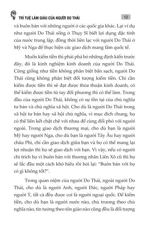 Trí tuệ làm giàu là cuốn sách trình bày các khía cạnh của sự khôn ngoan mà dân tộc Do Thái sở hữu. Hãy cùng suy ngẫm về sự giàu có và trí thông minh của họ. Cuốn sách có thể được coi là tóm lược về các công cụ tích lũy tài sản và các công cụ tư duy được những người Do Thái nổi tiếng toàn cầu như gia tộc Rothschild, Rockefeller, Buffett, Bill Gates và Soros sử dụng hàng bao năm qua.