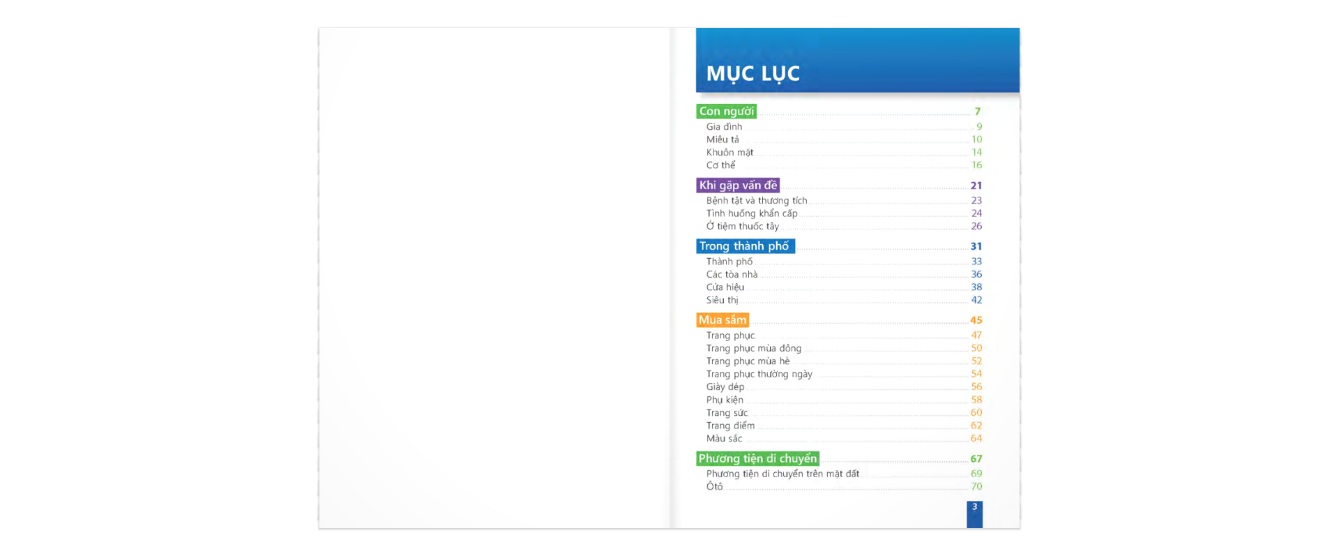 Được thiết kế để hỗ trợ bạn trong các chuyến du lịch, sách có kích thước nhỏ gọn, dễ mang theo, bao gồm 11 chương, cung cấp 1.800 hình thuộc những chủ đề liên quan đến cuộc sống hằng ngày như: tình huống khẩn cấp, mua sắm, đi lại, ăn uống, thể thao, giải trí…