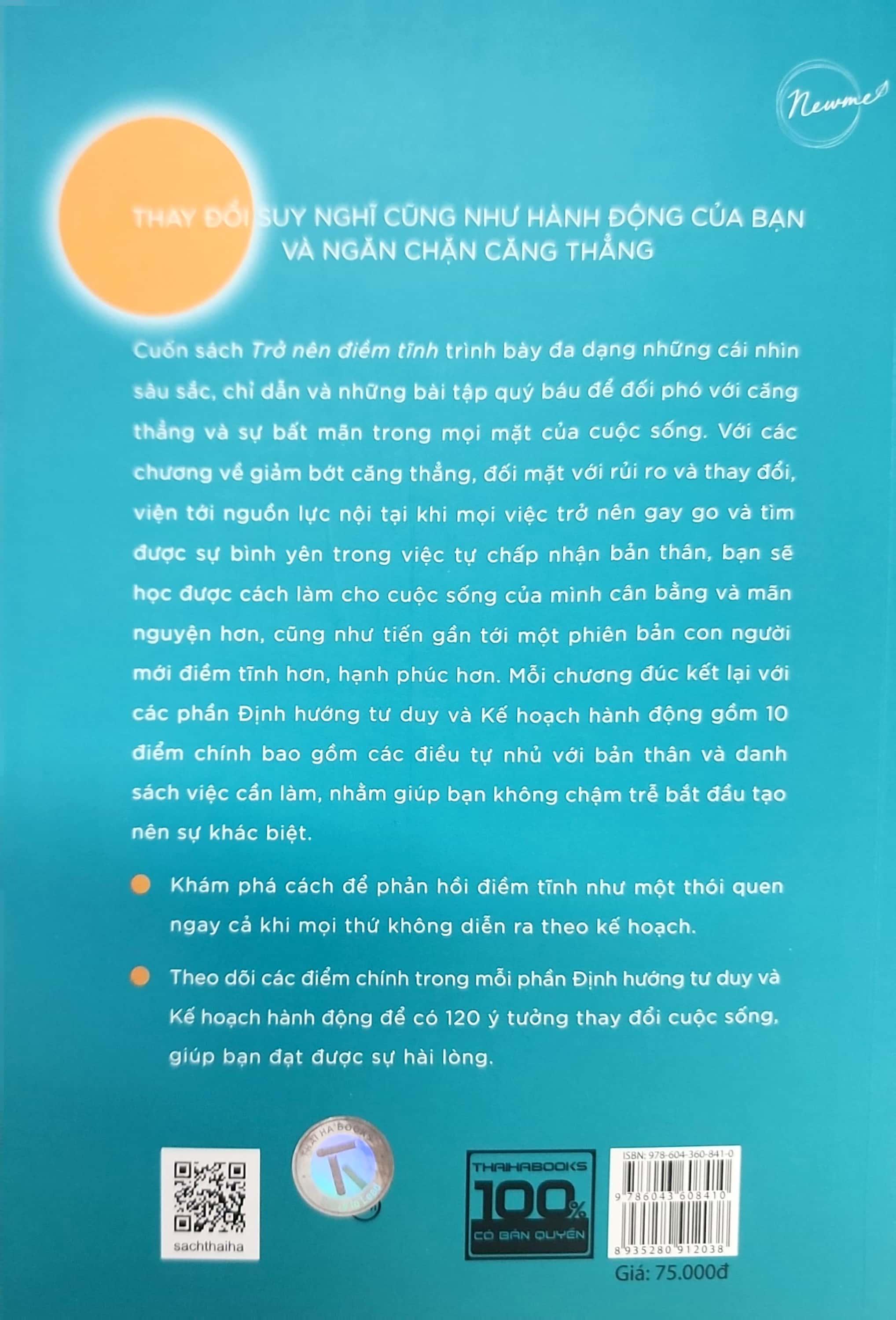Cuốn sách Trở nên điềm tĩnh trình bày đa dạng những cái nhìn sâu sắc, chỉ dẫn và những bài tập quý báu để đối phó với căng thẳng và sự bất mãn trong mọi mặt của cuộc sống. Với các chương về giảm bớt căng thẳng, đối mặt với rủi ro và thay đổi, viện tới nguồn lực nội tại khi mọi việc trở nên gay go và tìm được sự bình yên trong việc tự chấp nhận bản thân, bạn sẽ học được cách làm cho cuộc sống của mình cân bằng và mãn nguyện hơn, cũng như tiến gần tới một phiên bản con người mới điềm tĩnh hơn, hạnh phúc hơn.