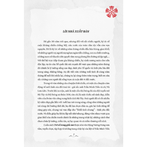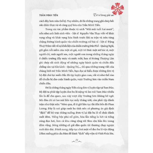 Cuốn sách Trở về trong giấc mơ được nhà văn Đặng Vương Hưng sưu tầm, tuyển chọn, tập hợp từ những trang nhật ký của liệt sĩ Trần Minh Tiến viết trong khoảng thời gian từ tháng 11/1966 đến tháng 3/1968...