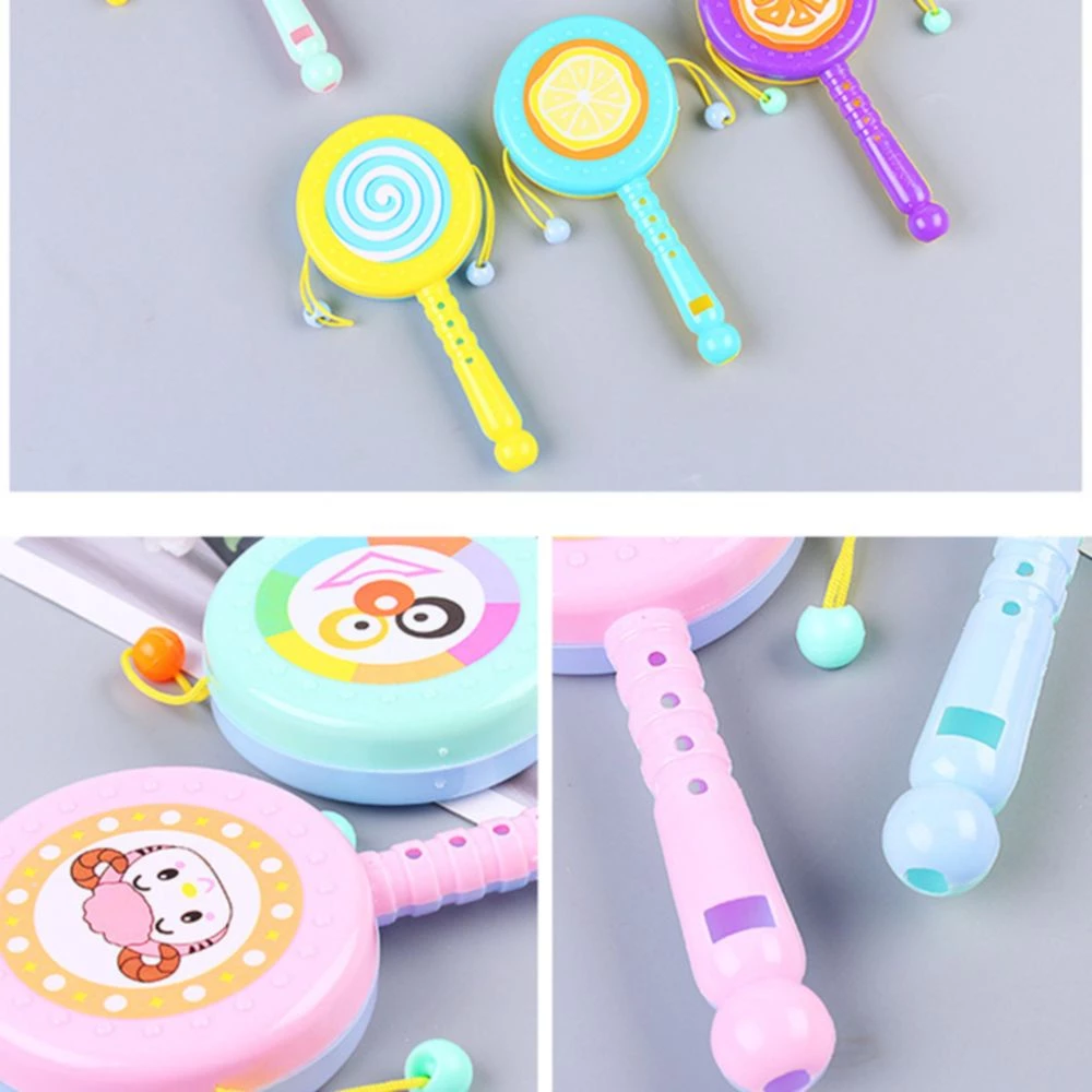 ✨Trống cho bé – Trống lục lạc cho bé in hình ngộ nghĩnh chất liệu nhựa ABS (đồ chơi lục lạc)