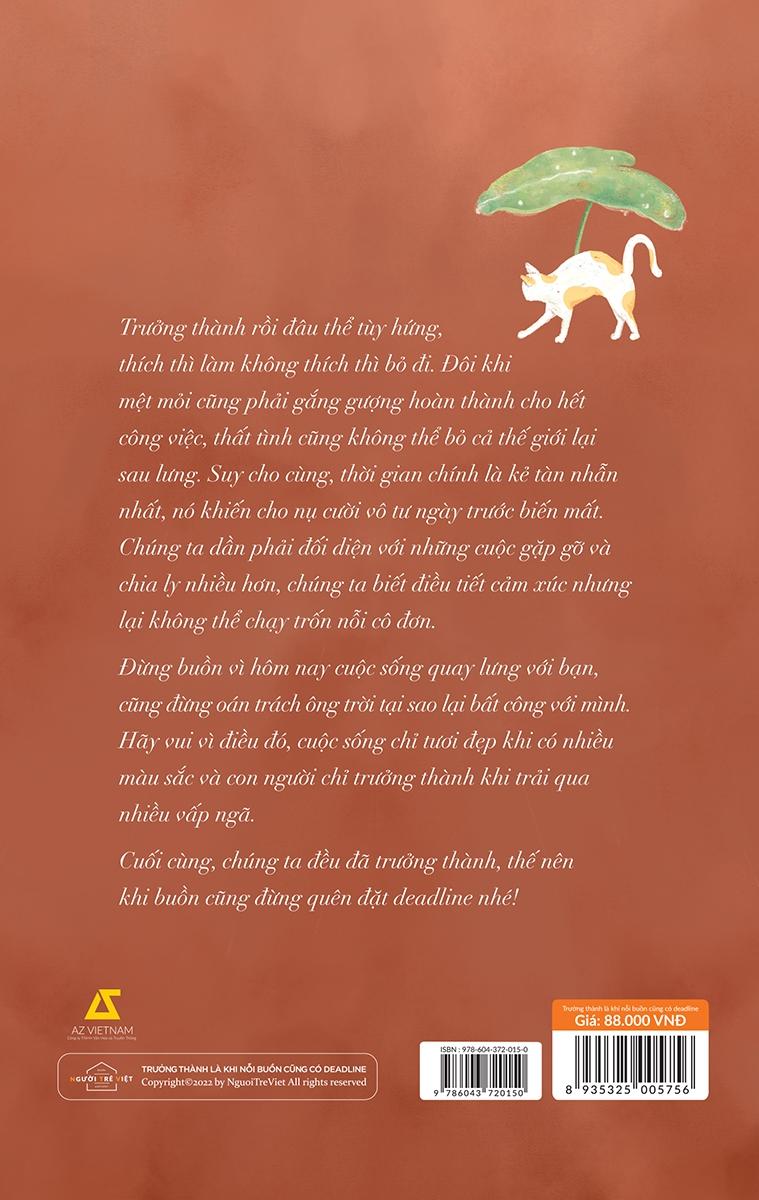 Và hãy ghi nhớ rằng “KHI CHÚNG TA TRƯỞNG THÀNH, ĐỪNG QUÊN ĐẶT DEADLINE CHO CẢ NỖI BUỒN”.