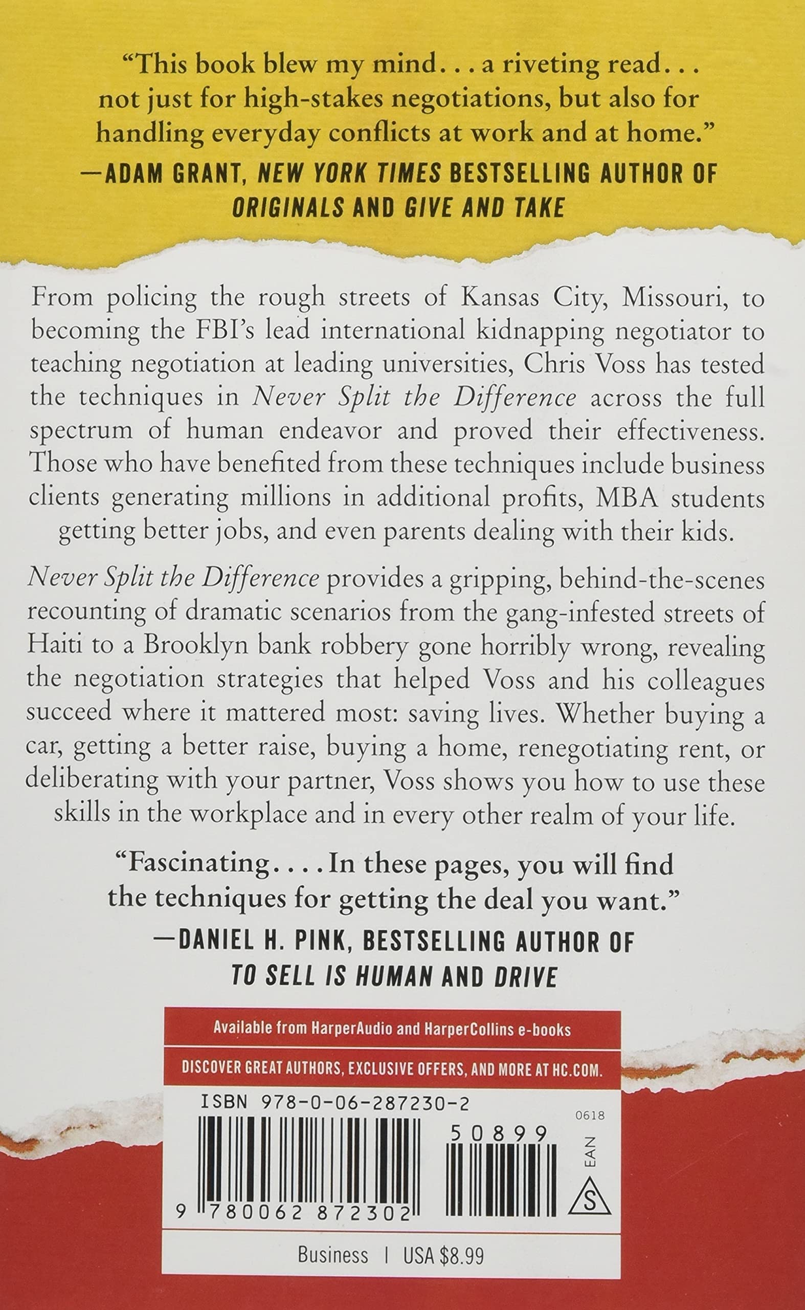 From policing the rough streets of Kansas City, Missouri, to becoming the FBI's lead international kidnapping negotiator to teaching negotiation at leading universities, Chris Voss has tested the techniques in Never Split the Difference across the full spectrum of human endeavor and proved their effectiveness. Those who have benefited from these techniques include business clients generating millions in additional profits, MBA students getting better jobs, and even parents dealing with their kids.