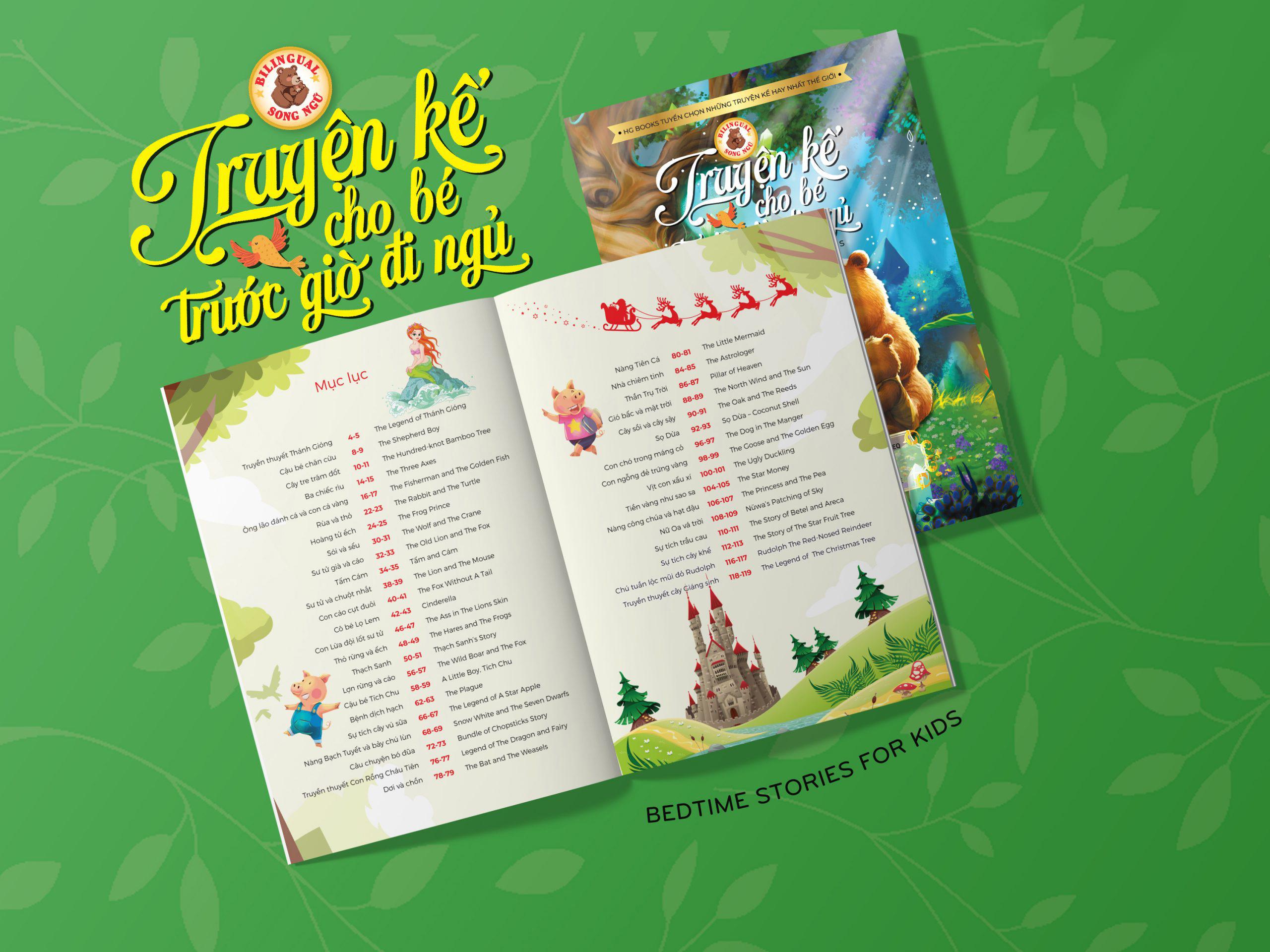 Truyện kể cho bé trước giờ đi ngủ (Bedtime Stories for Kids) là bộ sách song ngữ Việt Anh gồm 2 cuốn với 80 truyện kể hay nhất được tuyển chọn.