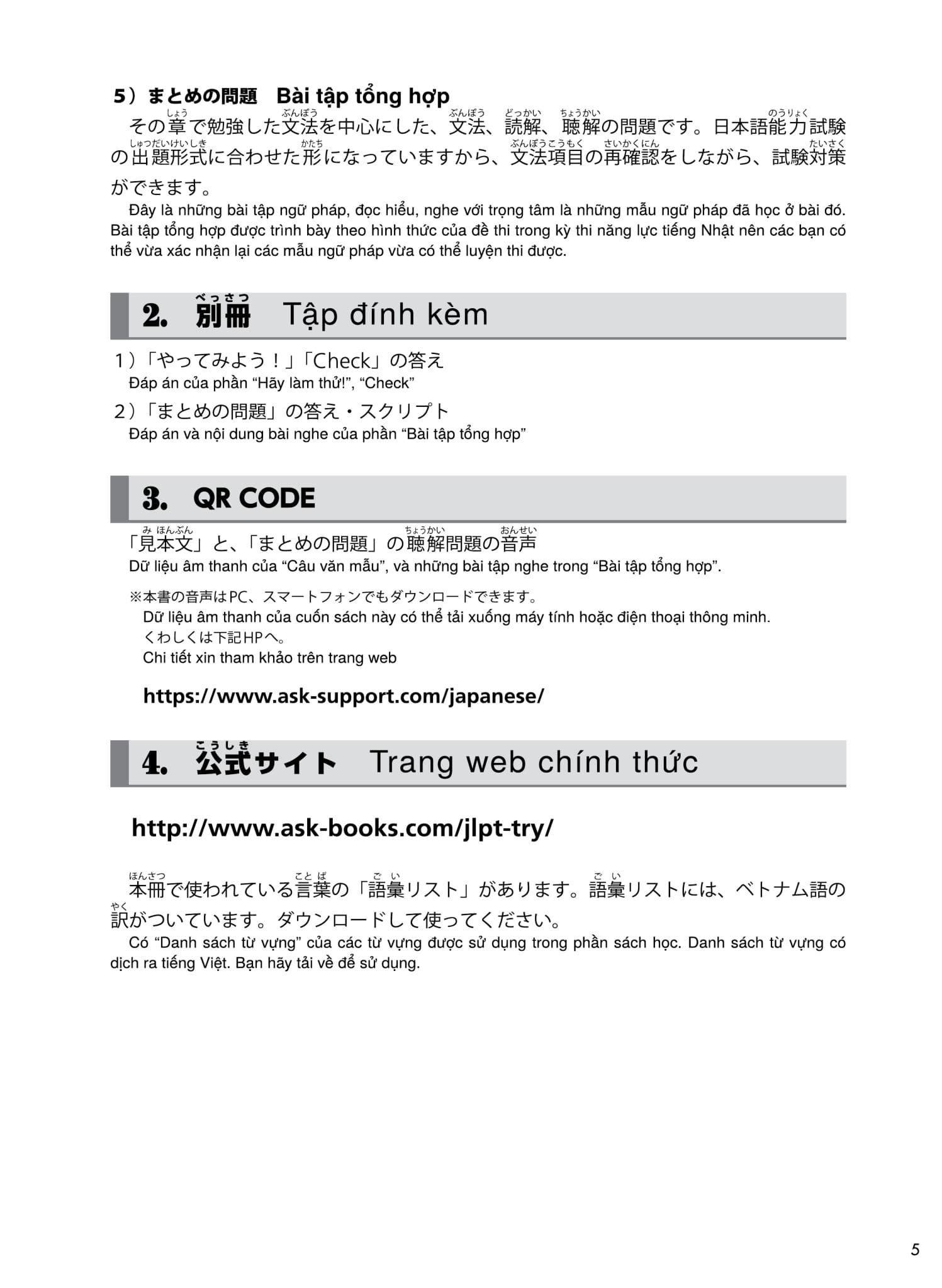 Bộ giáo trình này là tài liệu luyện thi thiết thực cho "Kỳ thi năng lực Nhật ngữ" các cấp độ từ N5 đến N1, giúp người học nắm chắc các điểm ngữ pháp và vận dụng chúng thông qua các bài luyện tập Nghe - Đọc.