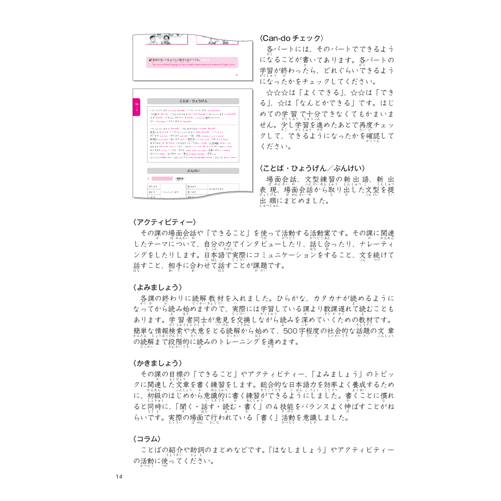 - Giới thiệu tóm tắt tác phẩm: Giáo trình được biên soạn nhằm giúp người học giao tiếp bằng tiếng Nhật tốt hơn trong các hoạt động xã hội. Các tình huống học tập trong