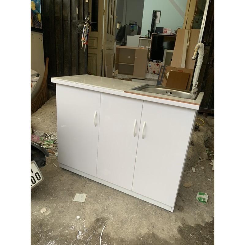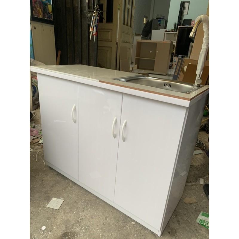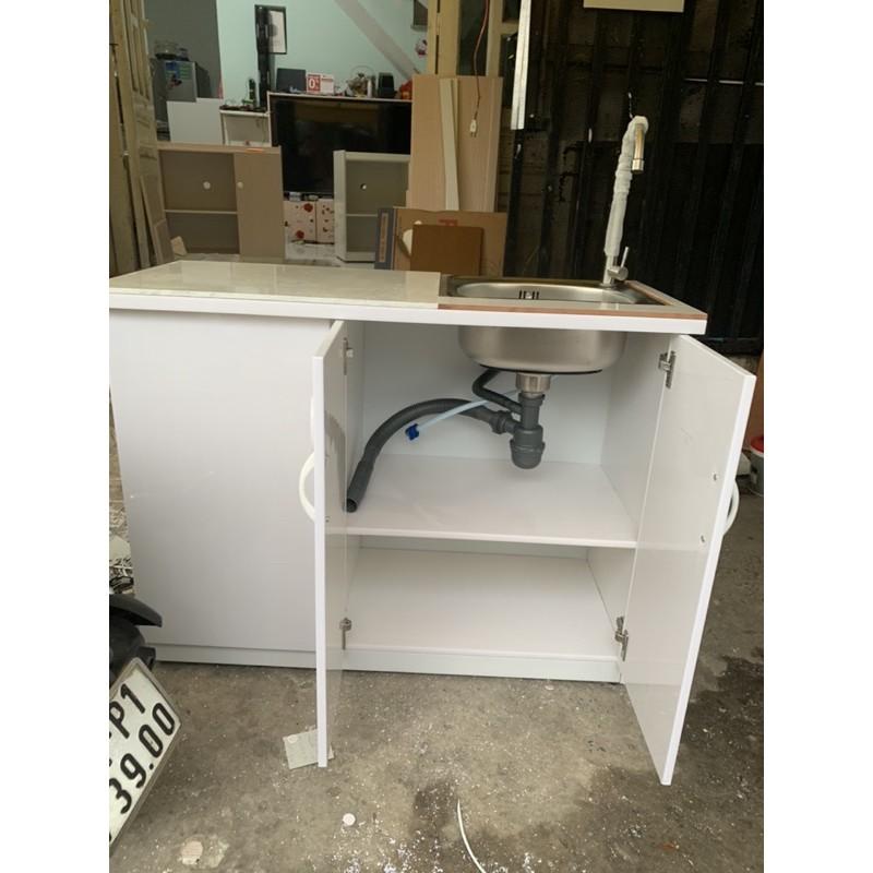 ✨Tủ bếp nhựa đài loan màu trắng có bồn rửa và mặt bếp dán gạch