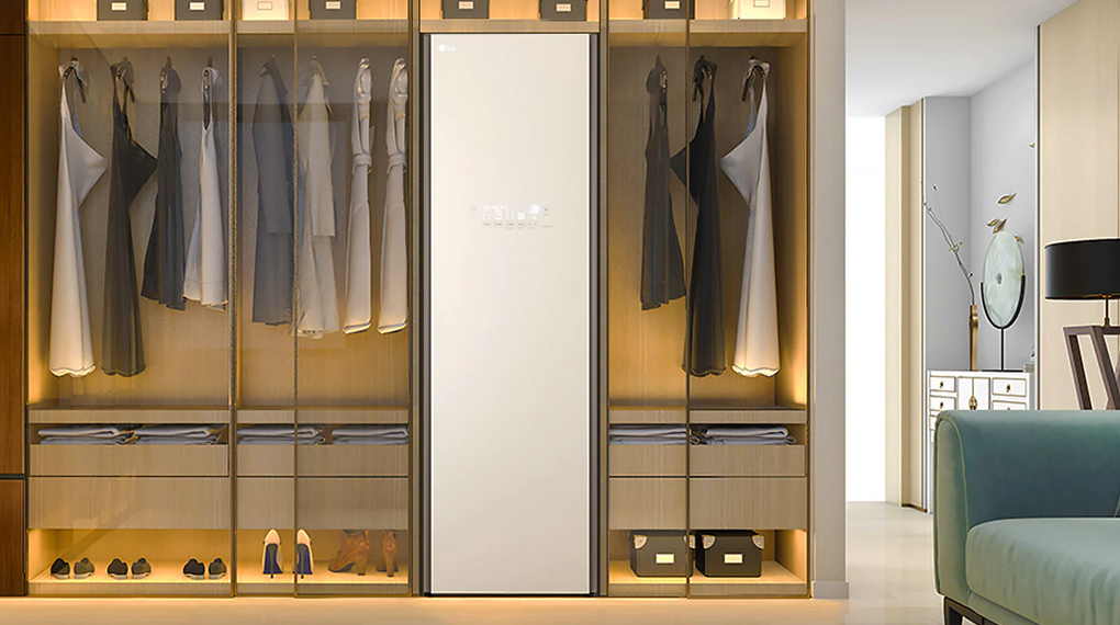 Tủ chăm sóc quần áo hỗ trợ công nghệ giặt hơi nước TrueSteam tạo luồng hơi nước tinh khiết giúp làm sạch sâu, loại bỏ mùi hôi, nếp nhăn, khử trùng quần áo và các đồ dùng khó giặt hiệu quả, chăm sóc trang phục kể cả đồng phục học sinh hằng ngày luôn tươi mới, gọn gàng.