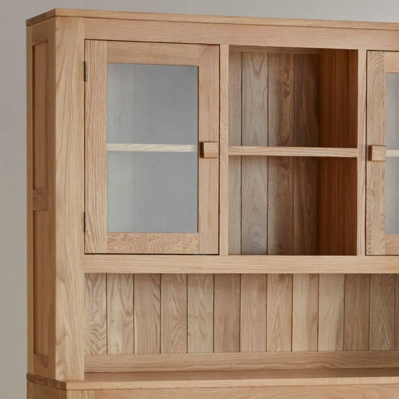 Tủ chén cao Oakdale lớn là tập hợp sự sáng tạo về kiểu cách và chức năng, tạo nên một mảnh ghép hoàn thiện về không gian nội thất cho phòng ăn của gia đình. Sản phẩm được chế tác thủ công từ các thợ mộc lành nghề. Sản phẩm mang đặc trưng bởi kết cấu ghép mộng truyền thống chính xác, với tay cầm gỗ vuông đơn giản và thanh lịch của bộ sưu tập Oakdale. Thiết kế với 4 ngăn tủ rộng rãi giúp việc lưu trữ các đồ dùng trong bếp trở nên gọn gàng và tiện dụng. Trong đó với 2 ngăn tủ kính và 2 ngăn kệ mở hỗ trợ việc trưng bày các đồ dùng trang trí, tô điểm cho phòng ăn thêm phần ấn tượng. Ngoài ra, với 4 ngăn kéo chắc chắn đáp ứng một lượng lưu trữ ẩn tuyệt vời; riêng mặt kệ giữa sẽ là nơi bày biện các món ăn hàng ngày rất tiện lợi. Toàn bộ bề mặt tủ được sơn PU cao cấp, vừa giúp bảo vệ lớp gỗ bên trong mà vẫn giữ nguyên được vẻ đẹp tự nhiên của gỗ sồi trắng Mỹ nhập khẩu.