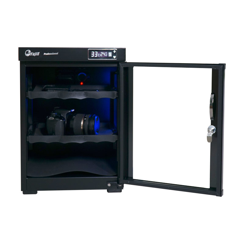 - 02 khay Có thể tháo dời Chất liệu: Tủ được làm bằng tôn dày 1.5mm dập khuôn, được hàn đính. Màu sơn: Toàn bộ tủ được sơn hai lớp bằng sơn tĩnh điện màu đen. Công nghệ Nhật Bản, xuất xứ chính hãng HƯỚNG DẪN SỬ DỤNG TỦ CHỐNG ẨM AN TOÀN, HIỆU QUẢ: Trước tiên chúng ta phải chọn vị trí thích hợp và điều chỉnh chân đứng để đảm bảo tính ổn định của tủ. Không được đặt tủ chống ẩm chuyên dụng Fujie DHC040 ở gần các thiết bị lò sưởi, có khói và khu vực bị nắng chiếu trực tiếp. Không để tủ chống ẩm Fujie DHC040 đúng hướng thổi gió của điều hòa, tránh tình trạng tủ luôn phải hoạt động hết công suất, tiêu hao điện lớn. Cắm dây điện vào ổ, đèn Led sáng, màn hình LCD hiển thị độ ẩm và nhiệt độ trong tủ, và tùy chỉnh nhiệt độ ẩm theo từng dòng máy. Các bạn để ngay ngắn các vật dụng vào tủ, tránh tình trạng vứt linh tinh dể hỏng hóc. MỘT SỐ HÌNH ẢNH KHÁC CỦA SẢN PHẨM: