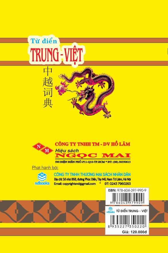 Khổ 10x16, bìa cứng, 1424 trang, in giấy trắng đẹp Nhằm đáp ứng nhu cầu tra cứu từ Việt sang Hán của người học tiếng Hán, nhất là để phục vụ cho đối tượng học