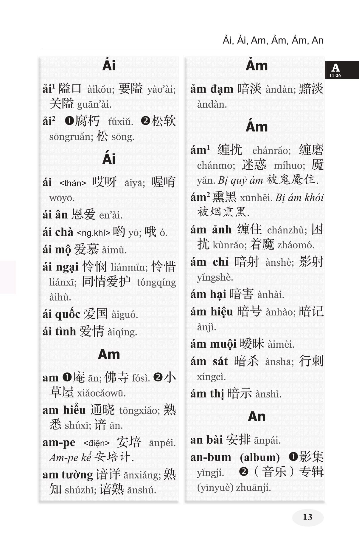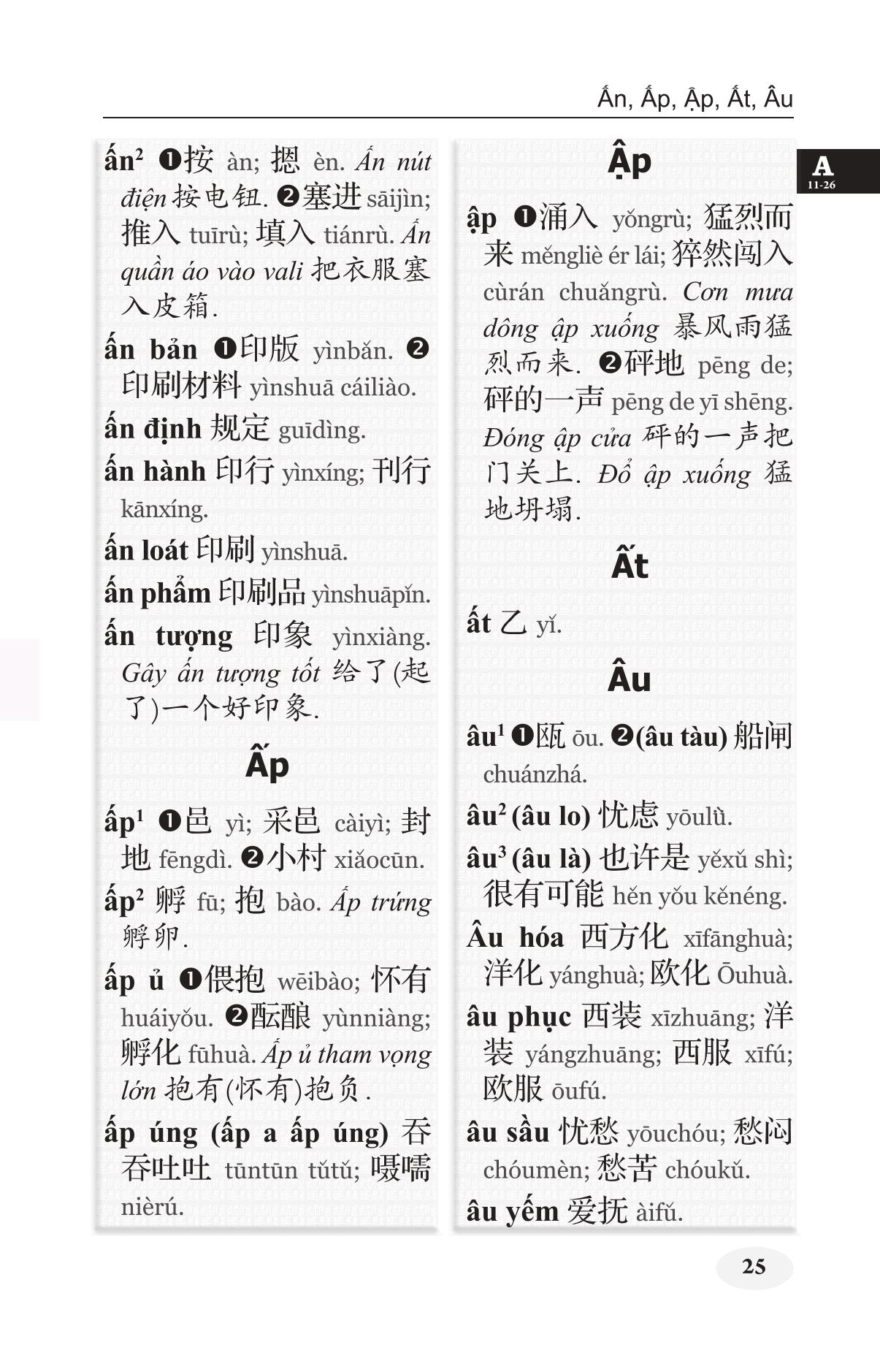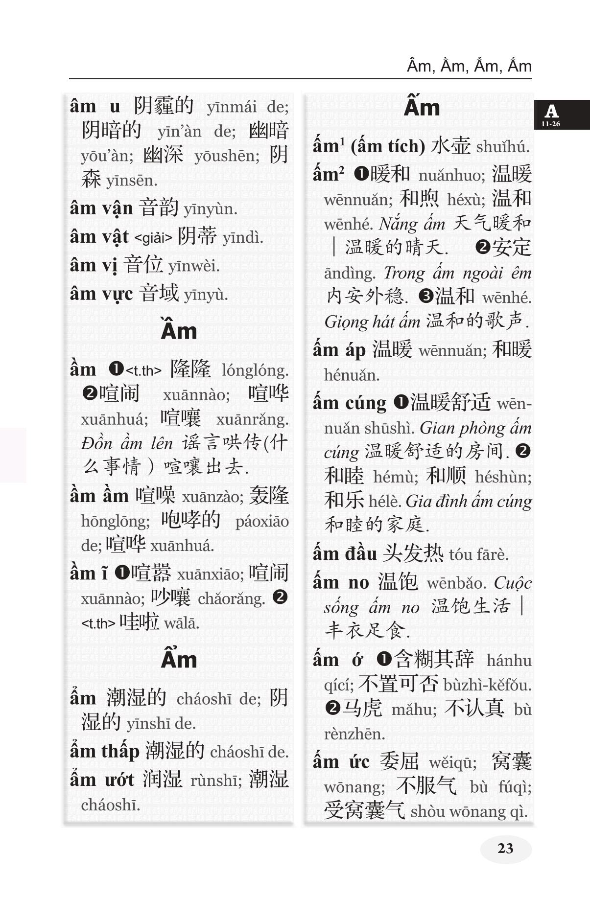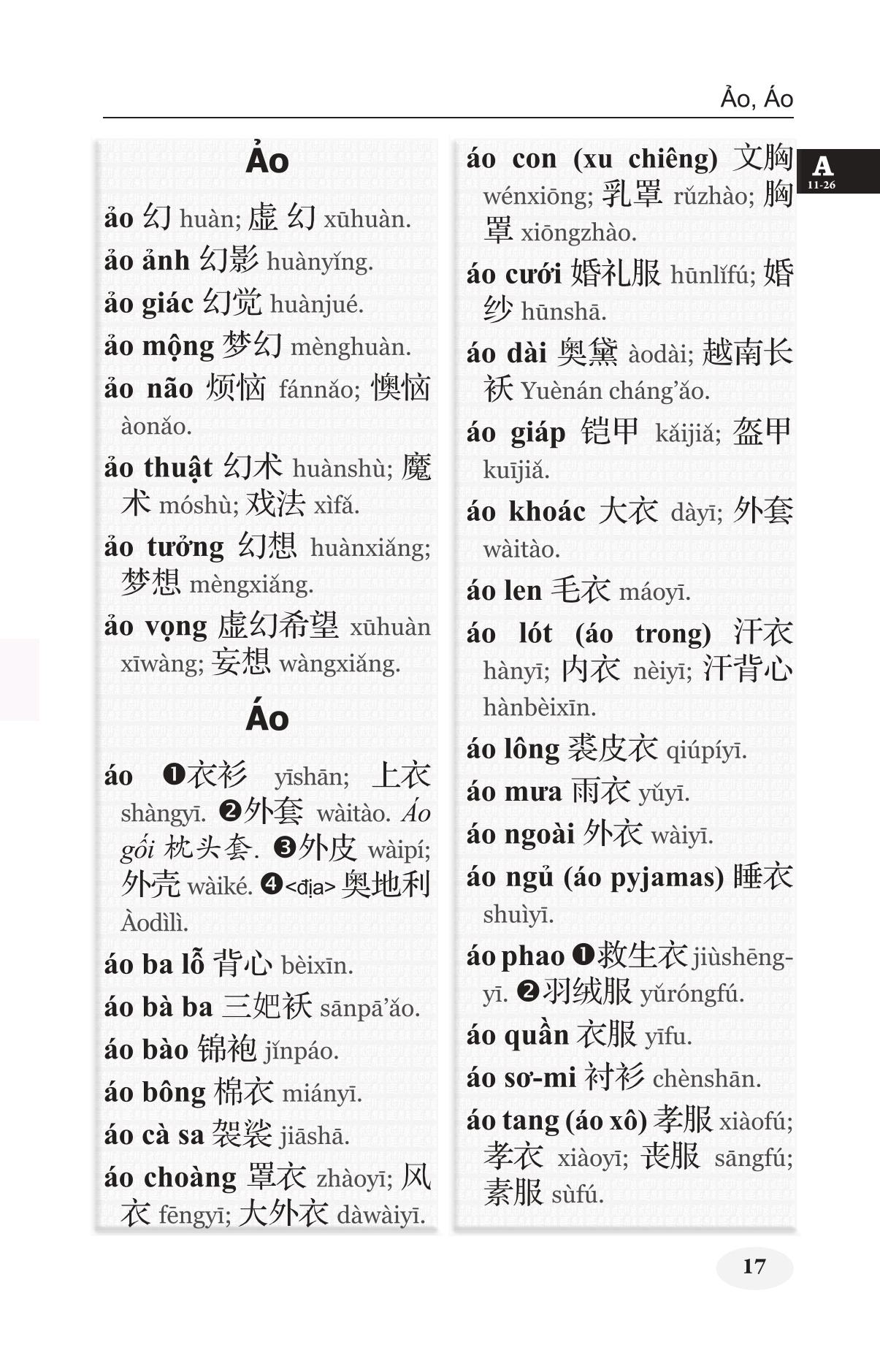 Khổ 10x19, bìa mềm, 1416 trang, in giấy trắng đẹp Để đáp ứng nhu cầu có công cụ đối chiếu hai ngôn ngữ Việt – Hán, chúng tôi đã biên soạn hai cuốn từ điển