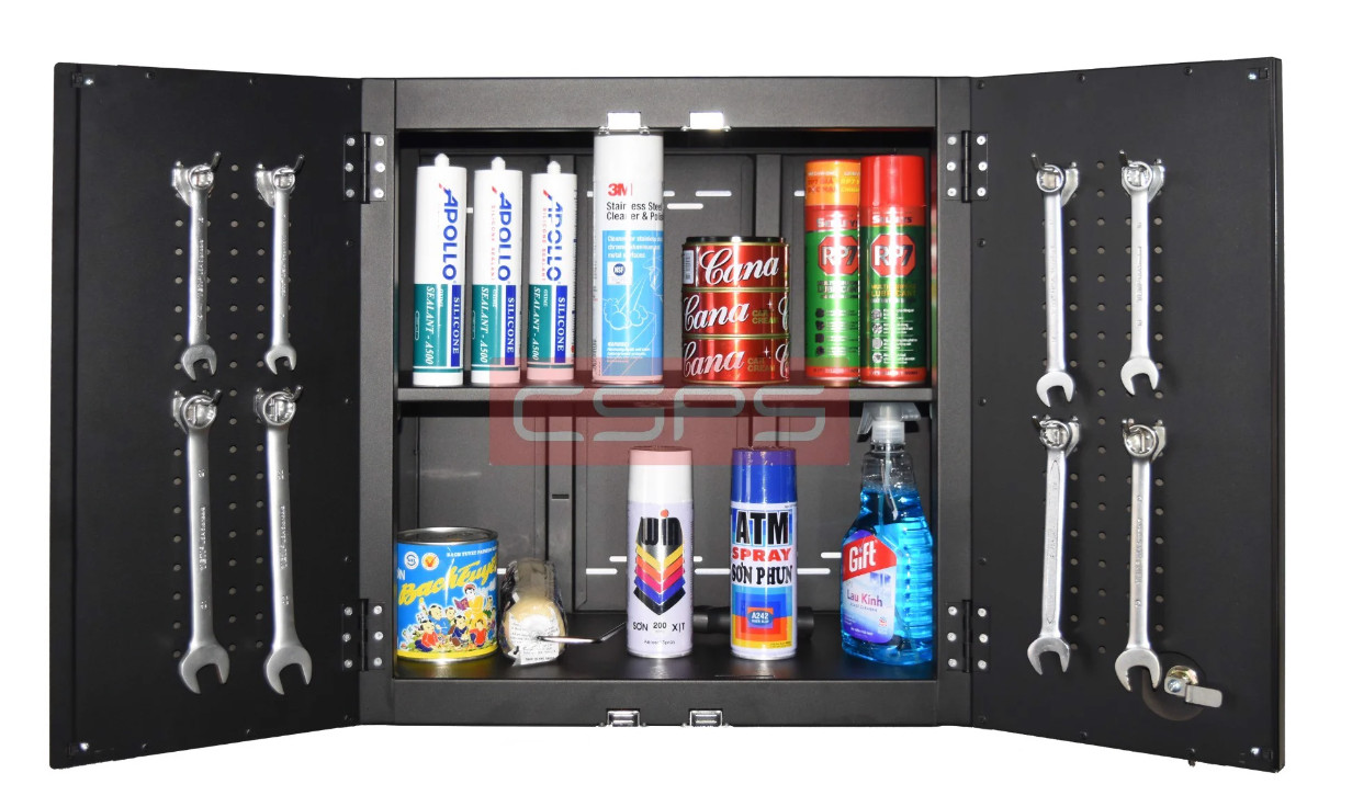 Tủ dụng cụ CSPS 7 ngăn kéo, mặt ván gỗ và vách lưới chất lượng cao. THÔNG SỐ KỸ THUẬT 1 THÔNG SỐ CHUNG Kích thước sản phẩm: 76.4 cm Ngang x 46.2cm Sâu x 96