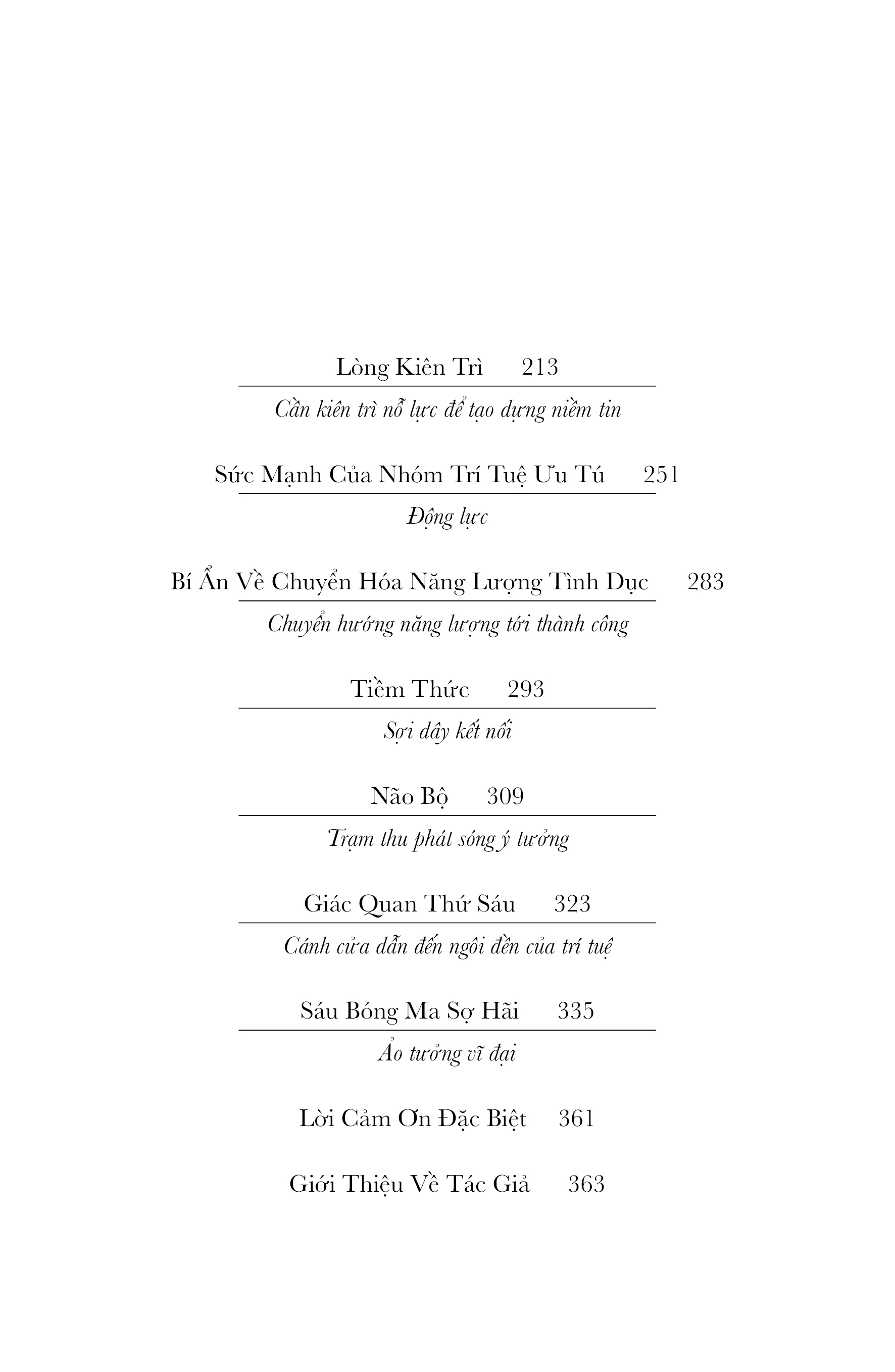 Mỗi chương kết thúc bằng các bài tập và bước hành động để bạn có thể áp dụng những gì mình vừa học được, giúp bạn biến khao khát thành động lực tiến lên phía trước. Trong quá trình đọc, hãy ghi lại những suy nghĩ và ý tưởng của bạn, làm rõ mục tiêu và sắp xếp kế hoạch.
