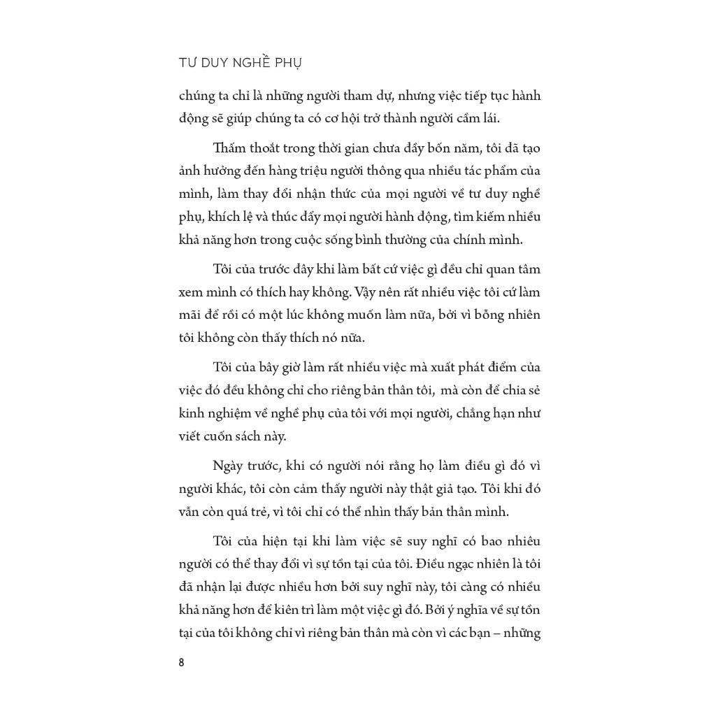 Theo ý nghĩa truyền thống, nghề phụ chỉ một công việc khác được làm vào lúc rảnh rỗi tận dụng được trong khi có một công việc toàn thời gian, là hành vi ngắn hạn. Nhưng ngày nay, nghề phục đích thực phải là đam mê và sở trường, là cách thể hiện giá trị tự thân, là hành vi dài hạn. Nghề chính, nghề phụ có thể cân bằng và bổ trợ cho nhau một cách hoàn hảo. Trong thời đại số, ý nghĩa của việc bắt đầu một nghề phụ không chỉ là tăng thêm một nguồn thu nhập, mà còn có khả năng cạnh tranh cốt lõi, là một kênh vô cùng quan trọng để chúng ta theo đuổi chính mình, thiết kế cuộc sống và thực hiện ước mơ của mình.