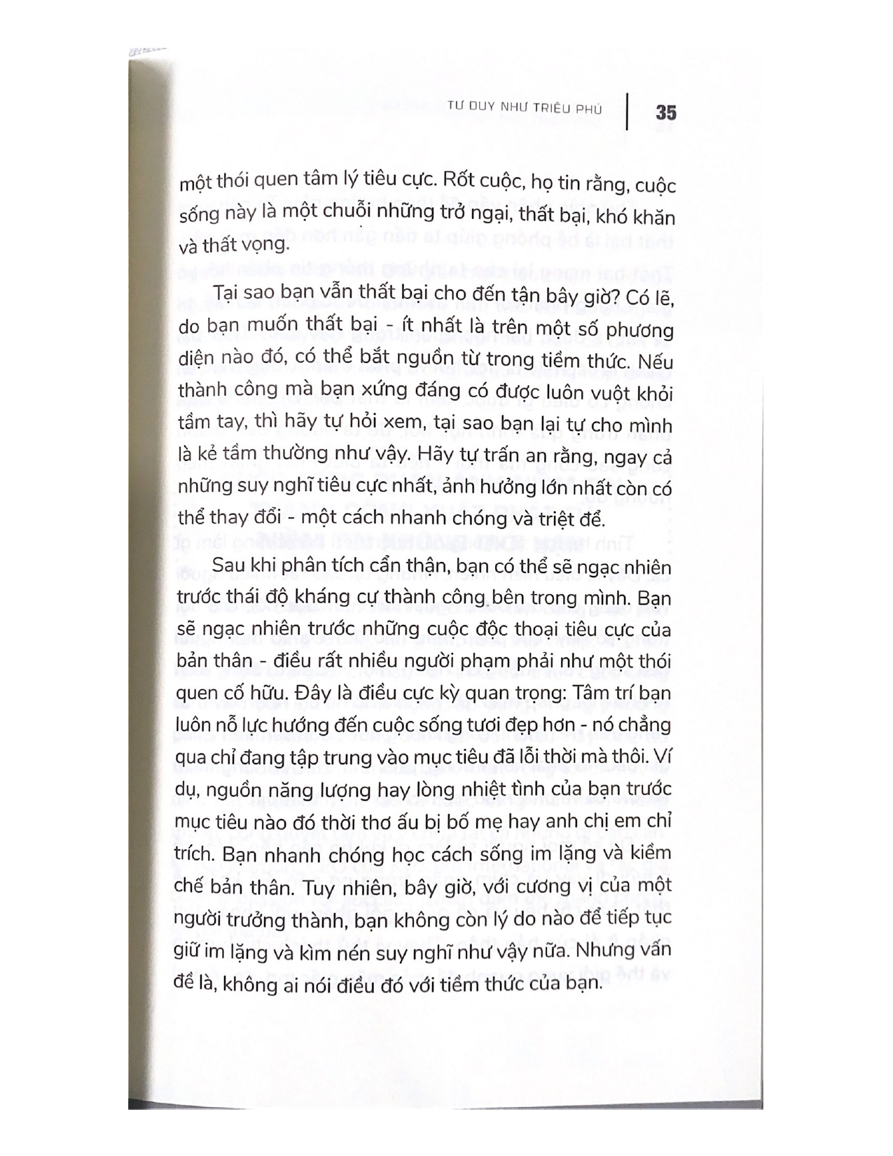 Đọc Tư duy như triệu phú, bạn sẽ học được cách loại bỏ những niềm tin tiêu cực, thay vào đó là tư duy tích cực. Bạn cũng sẽ khám phá các yếu tố khác của tư duy triệu phú, gồm lý do tại sao đưa ra quyết định nhanh dựa vào trực giác lại tốt hơn và cách thực hiện hiệu quả từng bước chiến lược để hướng tới mục tiêu đã đề ra.