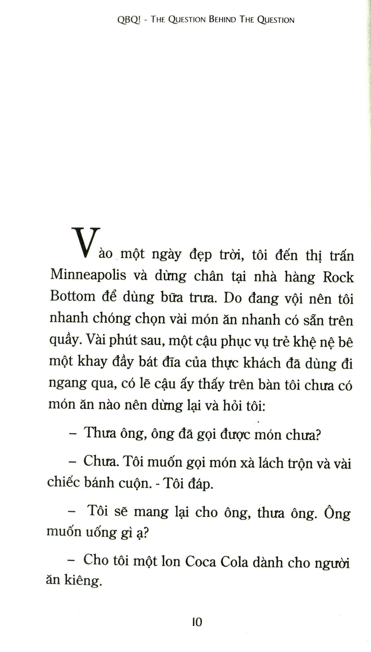 QBQ! - Tư Duy Thông Minh là một công cụ giúp bạn nhận diện giá trị thực sự của m.ình, dám nhìn thẳng vào trách nhiệm của bản thân từ trong suy nghĩ để vạch ra những phương hướng hành động thật thông minh. Bạn sẽ không còn phải lo âu, bối rối hay hoang mang vì những câu hỏi không lời giải đáp về những vướng mắc mà m.ình gặp phải trong công việc và cuộc sống. Ngược lại, bạn sẽ tìm thấy những câu hỏi tích cực do tinh thần QBQ mang lại. Bằng cách thực hành theo những gì QBQ hướng dẫn, cuộc sống của bạn sẽ thay đổi ngày một tốt đẹp hơn, và hiệu quả công việc của bạn sẽ ngày càng nâng cao.