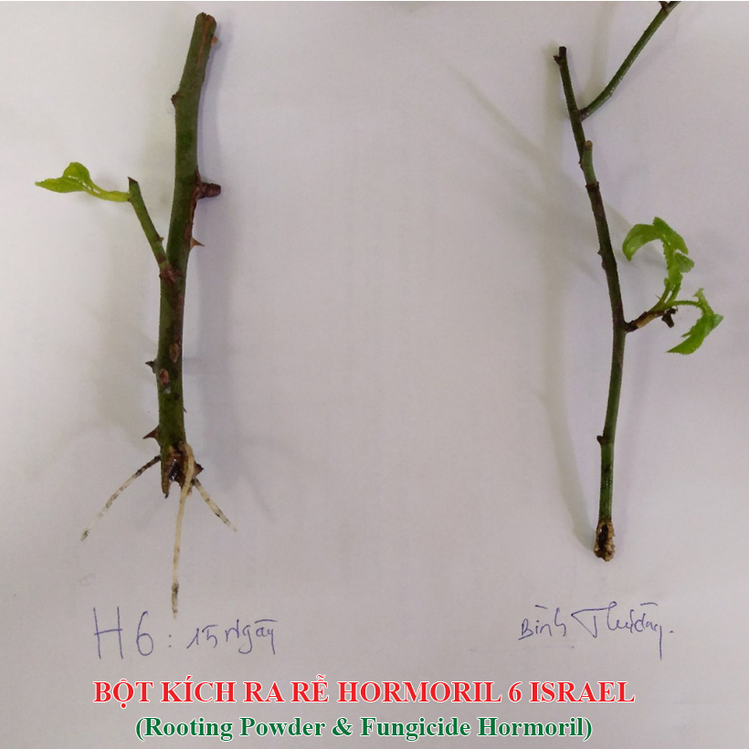 • Bột kích rễ Israel Hormoril 6 (với 0.6% IBA) dùng kích ra rễ tốt trên cây gỗ như Hoa cẩm chướng (Carnation), hoa hồng (Rose), hoa Biby (Gypsophila), Hoa Wax (Wax Flower), Hoa Giấy, Sung Mỹ, Nho giống Nhật và khác …