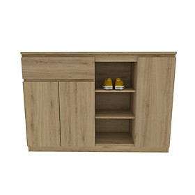 Tên sản phẩm: TỦ GIÀY 026 Mã sản phẩm: TG026 Kích thước: dài 1200 x rộng 320 x cao 1000mm Mô tả: 3 hộc cánh mở, 1 hộc kéo, 4 hộc tróng tiện dụng Vật