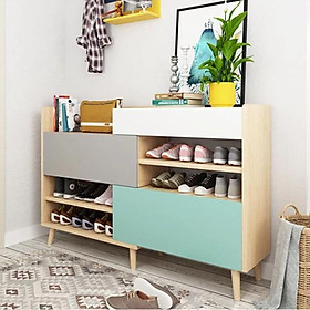 Tên sản phẩm: TỦ GIÀY 026 Mã sản phẩm: TG026 Kích thước: dài 1200 x rộng 320 x cao 1000mm Mô tả: 3 hộc cánh mở, 1 hộc kéo, 4 hộc tróng tiện dụng Vật