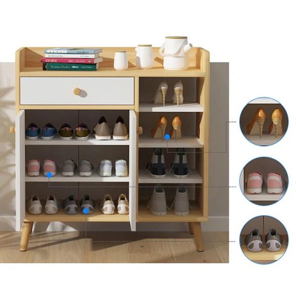 - Kích thước: - Tủ 2 cánh : Dài 60cm, Rộng 32cm, Cao 92cm. - Tủ 4 cánh : Dài 120/140cm, Rộng 32cm, Cao 92cm. - Chất liệu: Gỗ MDF phủ melamin chống xước chống nước dễ dàng vệ sinh. - Phong cách: Hiện Đại - Công năng: Sử dụng để cất giày dép tại căn hộ, tại văn phòng, tại quán cafe, tại shop spa salon vô cùng thích hợp. - Cấu tạo: Lắp ráp
