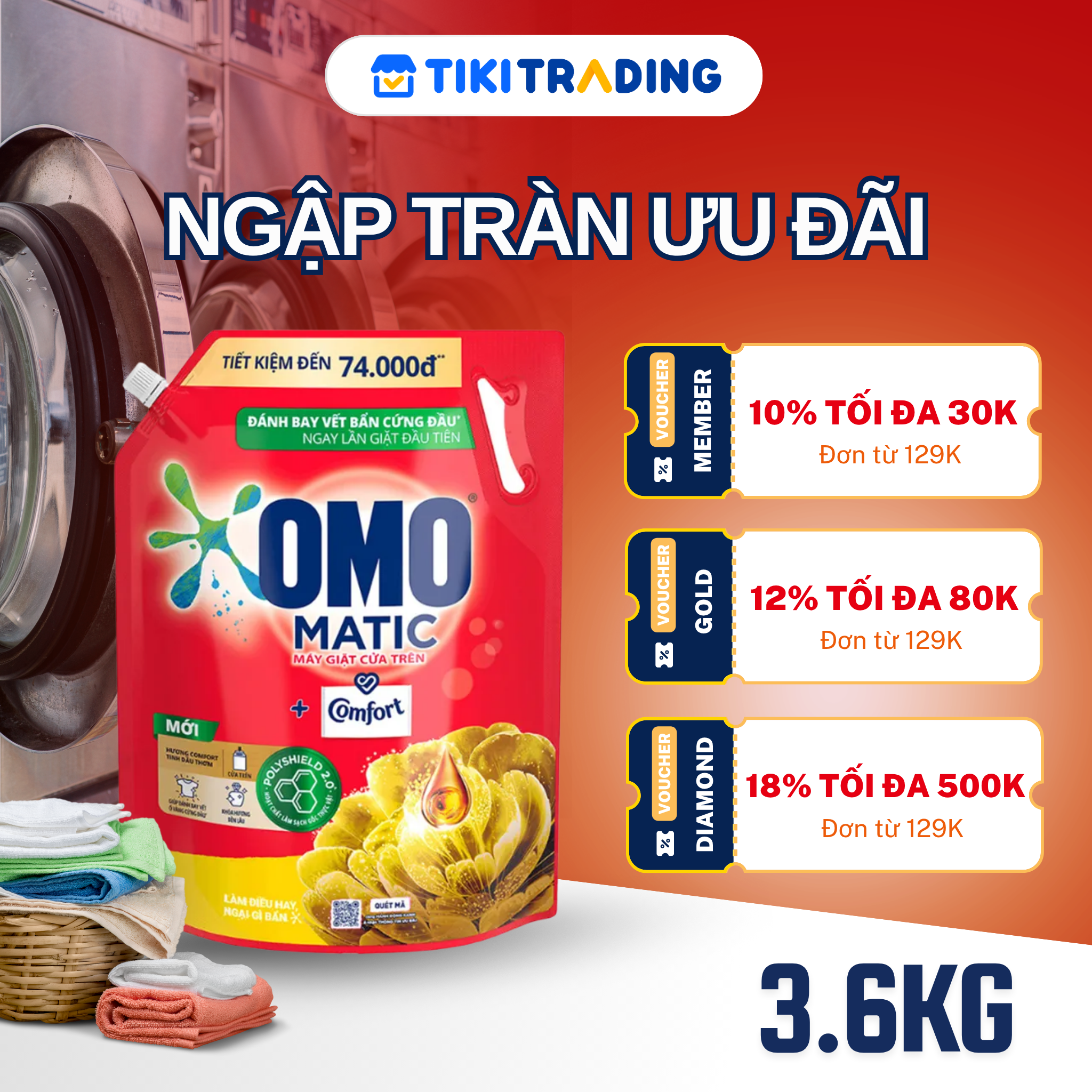 NƯỚC GIẶT OMO MATIC COMFORT - TINH DẦU NƯỚC HOA ĐA TẦNG, KHÓA HƯƠNG SUỐT 48H