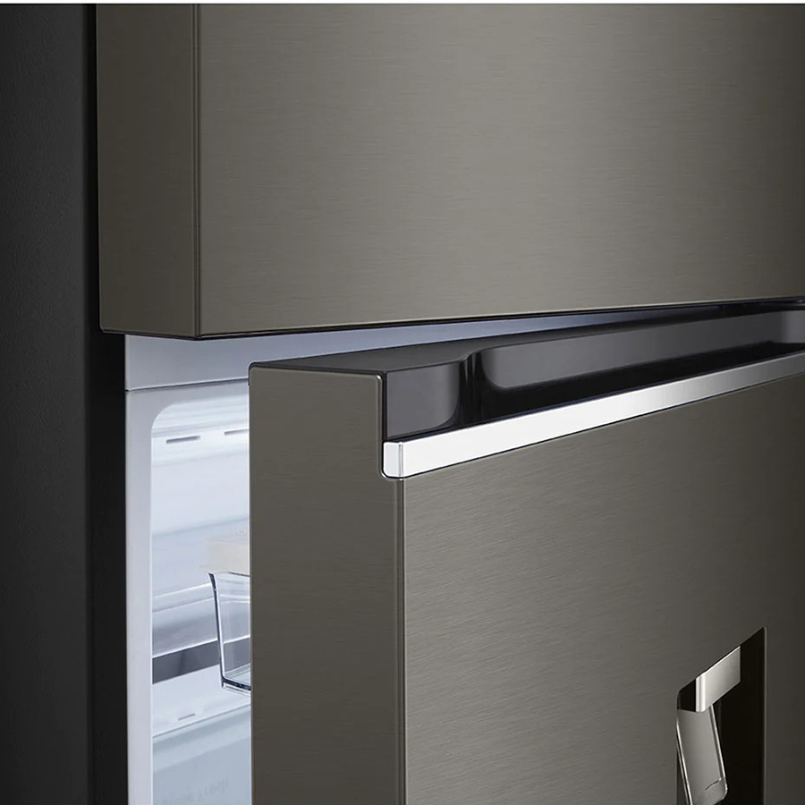 Tủ lạnh LG Inverter 374 lít GN-D372BLA sở hữu kiểu dáng thon gọn, gam màu đen sang trọng kết hợp với mặt cửa tủ là thép không gỉ tạo được độ bóng cao cho tủ. Là kiểu tủ ngăn đá trên quen thuộc nên dễ dàng kết hợp với gian bếp của gia đình Việt.