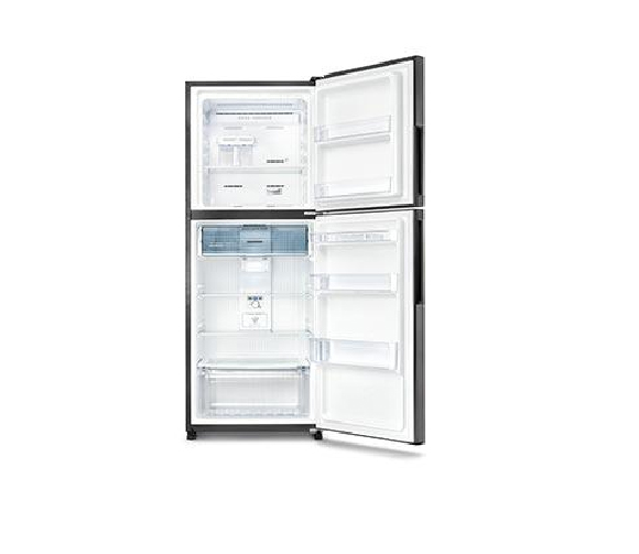 Tổng quan thiết kế - Tủ lạnh Hitachi với thiết kế kiểu dáng ngăn đá trên, tone màu đen dễ dàng kết hợp với nội thất trong nhà. - Cửa tủ lạnh được làm bằng chất liệu thép không