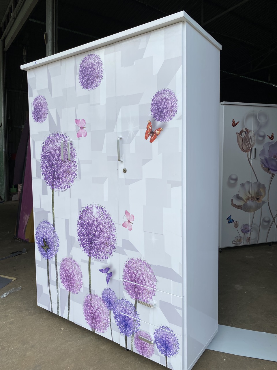 TỦ NHỰA ĐÀI LOAN 3 CÁNH 2 HỘC ÂM CAO 1M8 IN HÌNH 3D HOA BỒ CÔNG ANH