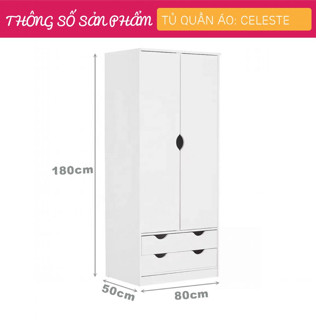 Tủ quần áo gỗ SMLIFE Celeste với phong cách đơn giản sẽ là điểm nhấn nổi bật cho phòng ngủ của bạn. Sản phẩm phù hợp với nhiều phong cách nội thất từ hiện đại cho tới cổ điển, vintage. Giường ngủ gỗ SMLIFE được thiết kế cân đối và cực kỳ chắc chắn mang đến nhiều không gian lưu trữ quần áo và đồ dùng. Sử dụng vật liệu ván ép công nghiệp MDF chống ẩm phủ Melamine cao cấp giúp tủ quần áo SMLIFE có độ bền cao, chống trầy và chống ẩm rất tốt. SMLIFE có hàng chục mẫu tủ quần áo với thiết kế mới lạ, độc đáo chắc chắn sẽ mang đến sự ấm áp cho phòng ngủ của bạn.