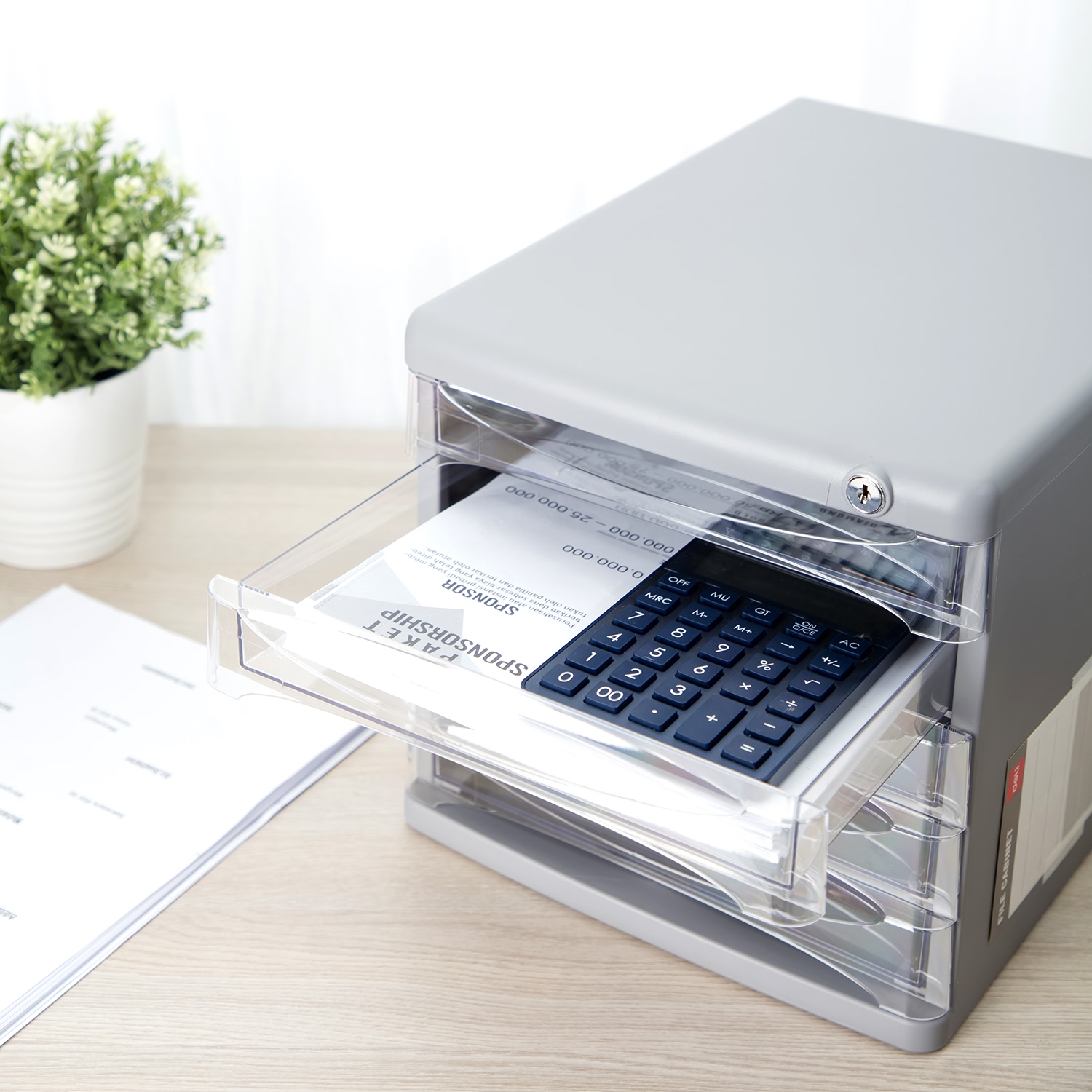 Chất liệu: PP + GPPS Cấu trúc chắc chắn giúp sử dụng thời gian dài Khóa giúp bảo mật cao Ngăn kéo màu trong giúp dễ dàng nhìn bên trong Ngăn kéo phân file giúp