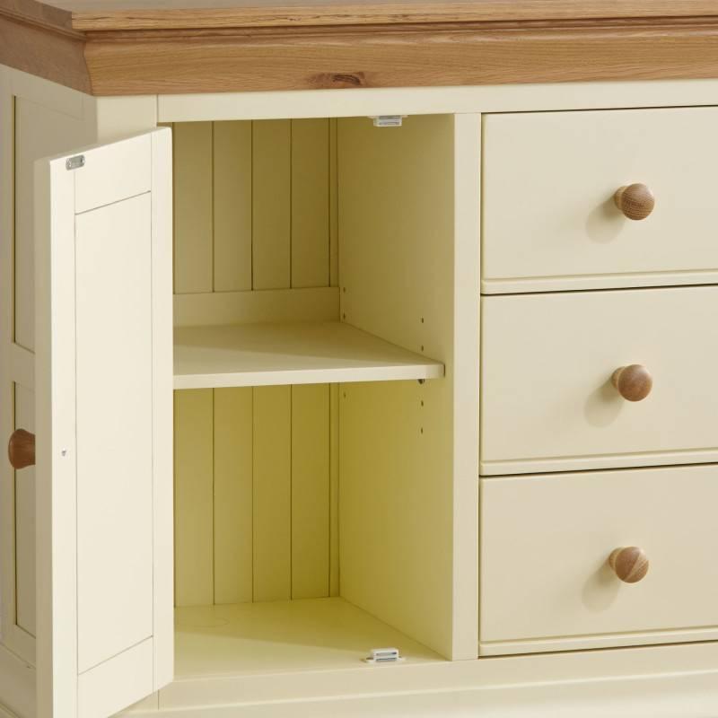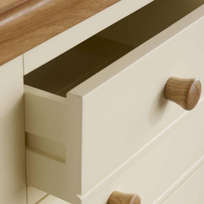 Tủ trữ đồ Country Cottage được thiết kế để tối đa hóa không gian lưu trữ cho một ngôi nhà trở nên gọn gàng và ngăn nắp. Sản phẩm chế tác dựa trên phong cách kiểu dáng cổ điển của Pháp. Bề mặt tủ được sơn màu kem tạo sự tương phản và hấp dẫn với màu nâu tự nhiên của chất liệu gỗ sồi trắng Mỹ nhập khẩu. Kết hợp đường lõm tinh tế và các mép tròn mềm mại, chân đế cong tạo nên một tổng thể thanh lịch và sang trọng. Tất cả ba ngăn kéo được chế tác thủ công, kết cấu khớp nối truyền thống chắc chắn. Được trang trí bởi một tay cầm nút gỗ, mở ra không gian bên trong rộng rãi, với một tấm kệ có thể điều chỉnh chiều cao đáp ứng việc lưu trữ đồ dùng linh hoạt. Thiết kế thuộc bộ sưu tập Country Cottage này, không chỉ phủ hợp cho nội thất phòng ngủ mà còn các khu vực, vị trí khác nhau trong ngôi nhà như phòng khách, phòng ăn, phòng làm việc….