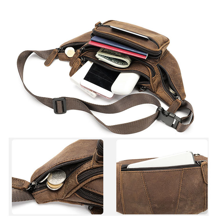 Túi Bao Tử, Túi Đeo Bụng Da Bò Marrant - BHM8879 với thiết kế nhiều ngăn khóa kéo: 3 ngăn kéo trước, 1 ngăn chính, 2 ngăn nhỏ bên sườn, 1 ngăn khóa kéo nhỏ phía sau túi giúp bạn thoải mái để phụ kiện cá nhân.