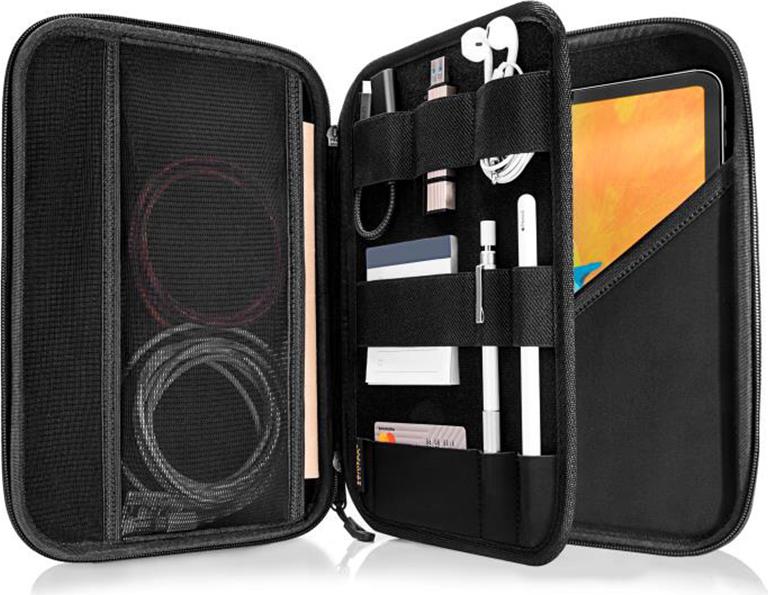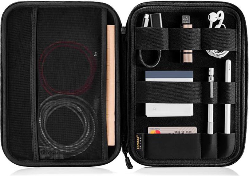 Dung lượng lớn: Có 4 dây đai đàn hồi để đựng cáp USB, tai nghe và nhiều phụ kiện nhỏ hơn. Có ngăn đựng thẻ tín dụng và Hộ chiếu, bên trong có 1 ngăn lưới có khoá kéo để chứa các vật dụng khác.
