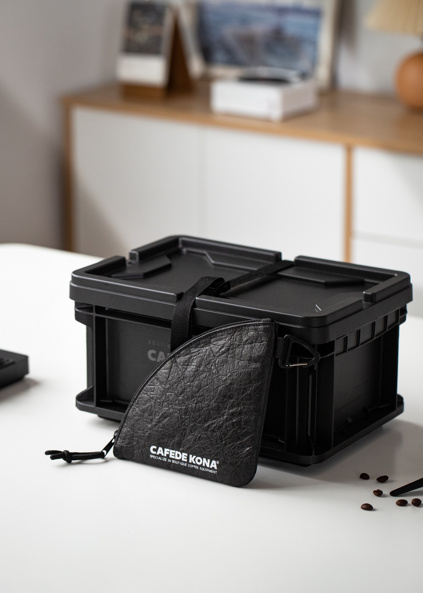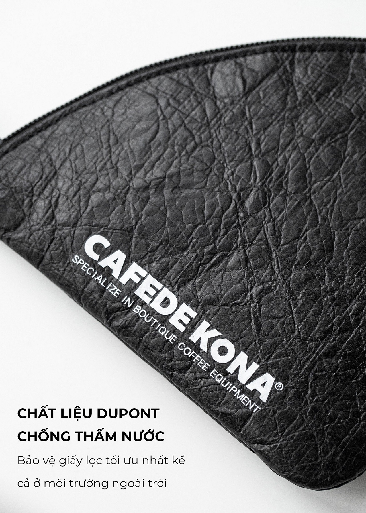 TÚI VẢI ĐỰNG GIẤY LỌC PHA CÀ PHÊ CAFE DE KONA Túi đựng bảo quản giấy lọc với chất liệu Dupont chống thấm nước, có thể bảo vệ giấy lọc tối ưu nhất kể cả ở môi trường ngoài trời. Với thiết kế dày dặn và có khóa kéo zip bảo vệ giấy lọc không bị biên dạng, an toàn và vệ sinh. Có móc treo được thiết kế hình tam giác thuận tiện. Khóa kéo zipper giúp chống nước, chống bụi, an toàn, vệ sinh.Bảo quản giấy lọc dễ dàng và sạch sẽ. Túi có sức chưa lớn: có thể chứa từ 40 đến 60 miếng giấy lọc. Thương hiệu: CAFEDE KONA Chất liệu: Dupont chống thấm nước Sử dụng cho giấy lọc V60 và giấy lọc hình quạt