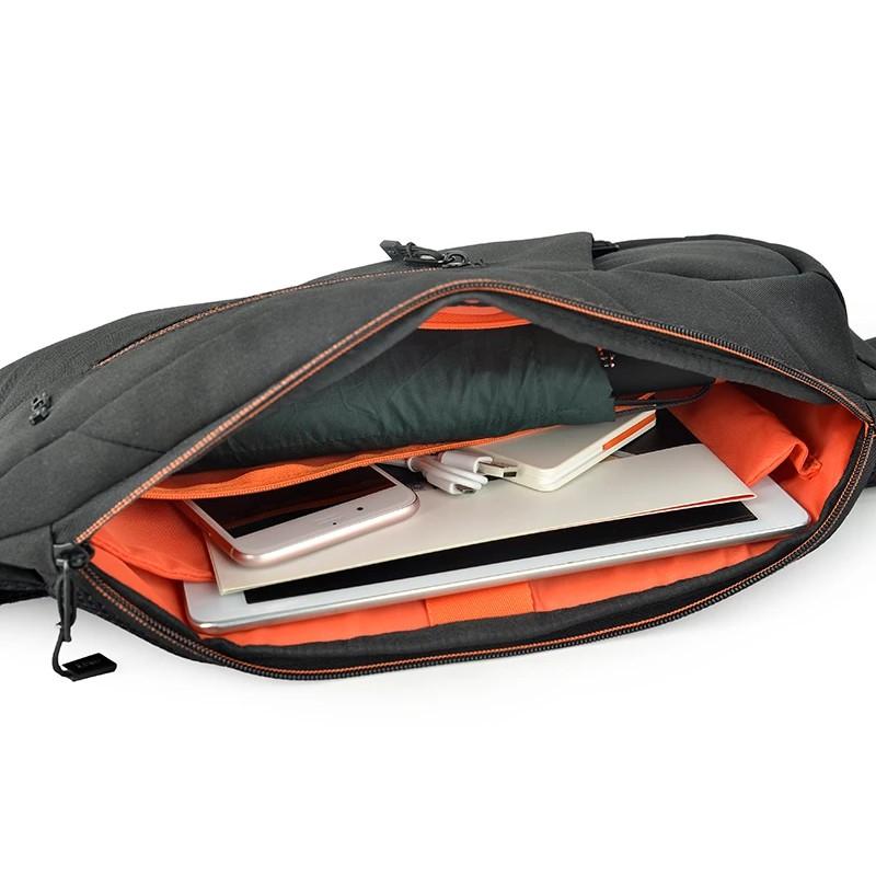Ngăn chính bảo vệ ipad tối đa 12'', có thể đựng được điện thoại, tai nghe, sạc, USB, passport, thẻ