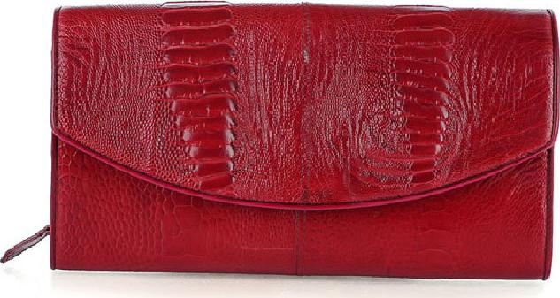 Bóp/Ví da đà điểu Huy Hoàng da chân kiểu đứng màu nâu đỏ, vàng bò, đen, nâu đất 2411-12-13-15